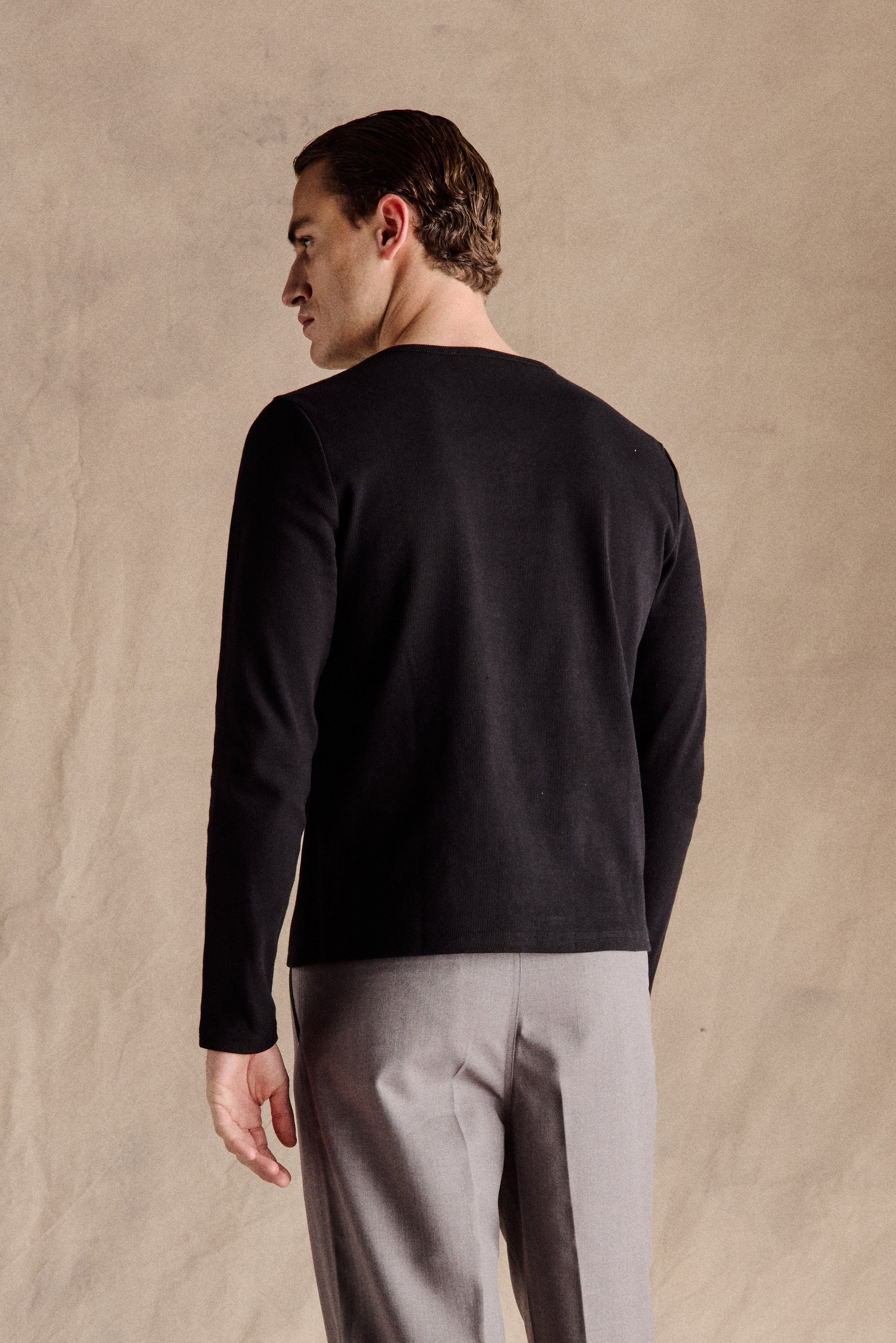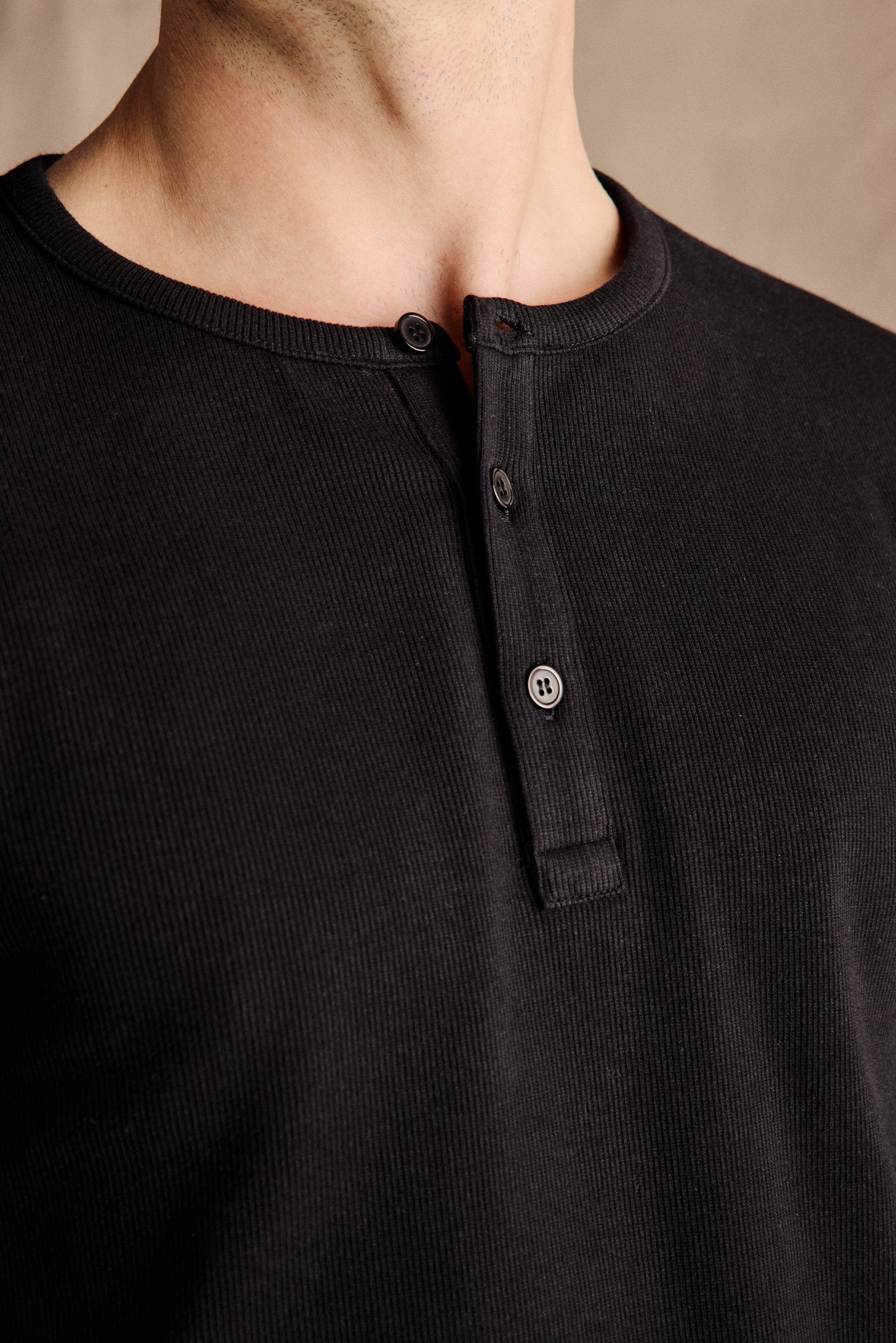 Our bestselling Henley Shirt in Black is inspired by its 19th-century English rowing heritage, a collarless design originally created for freedom of movement. The slim fit, ribbed texture and signature three-button closure combine classic style with a modern silhouette.