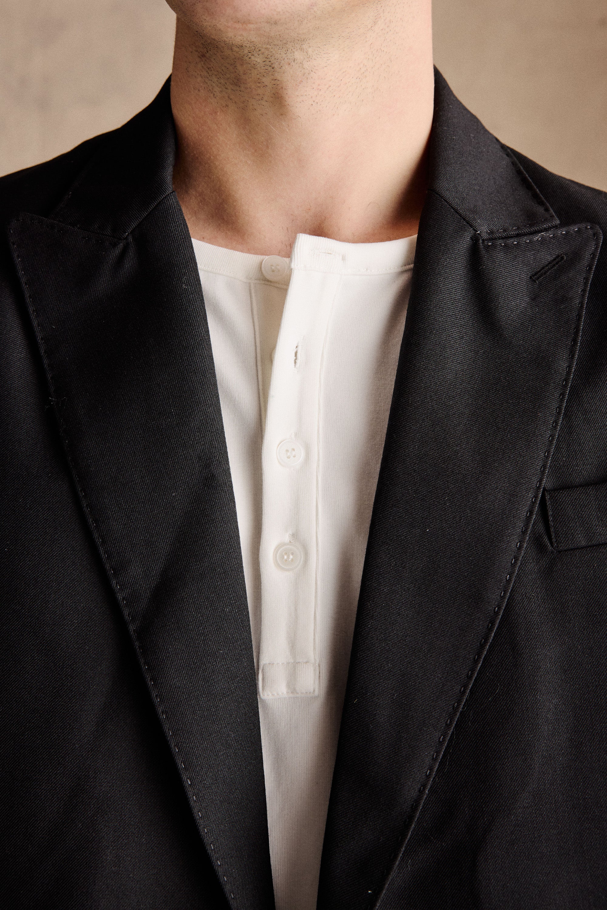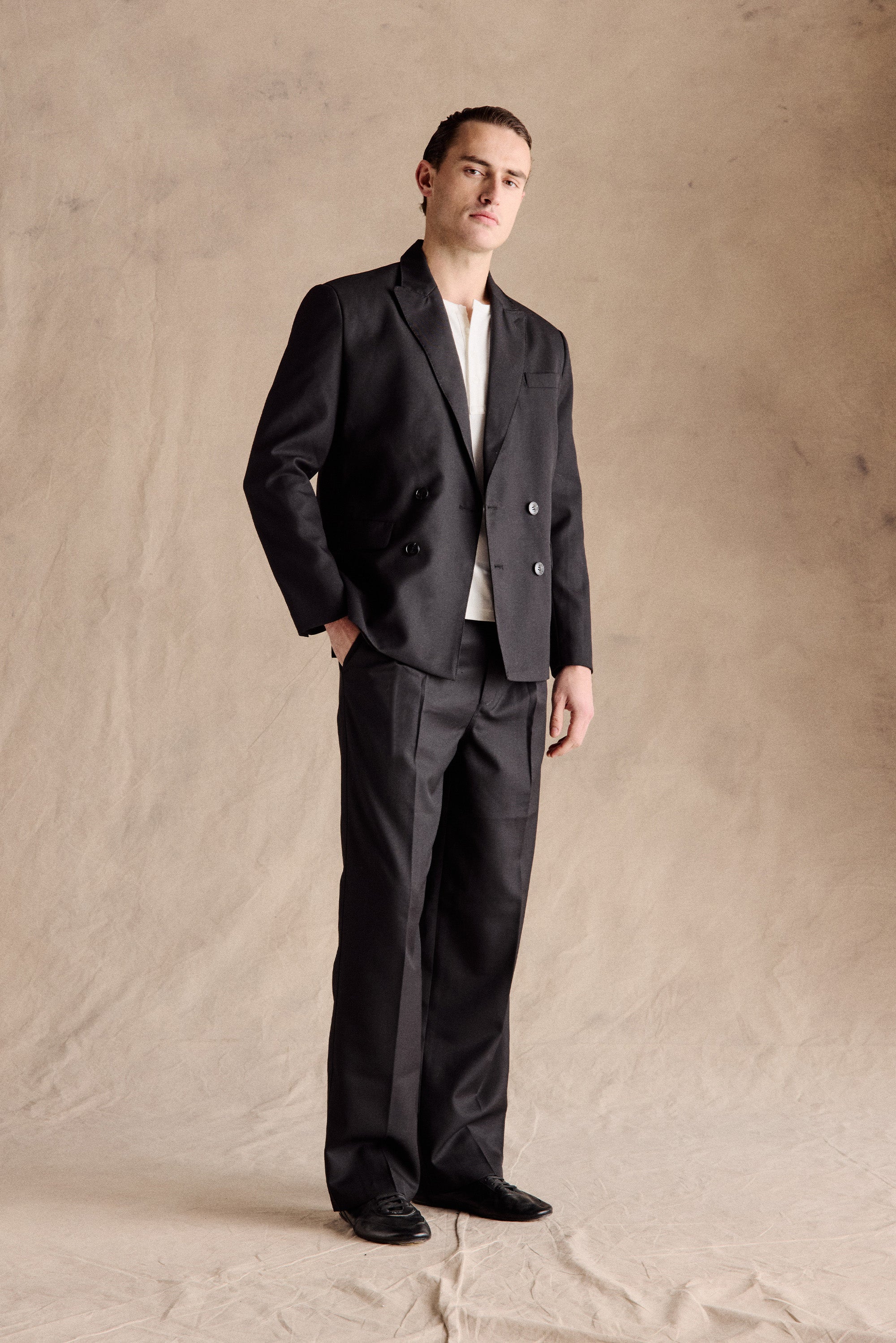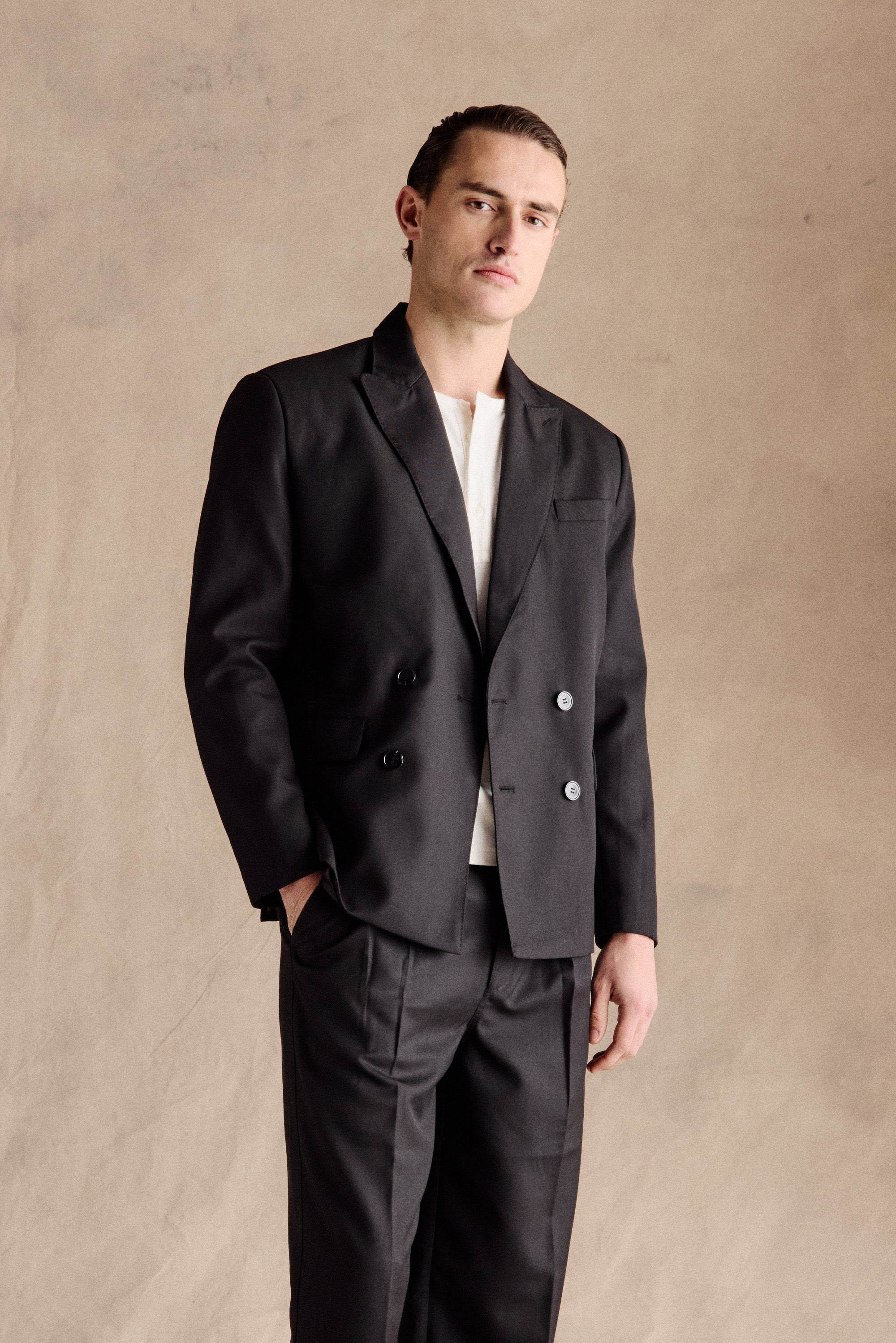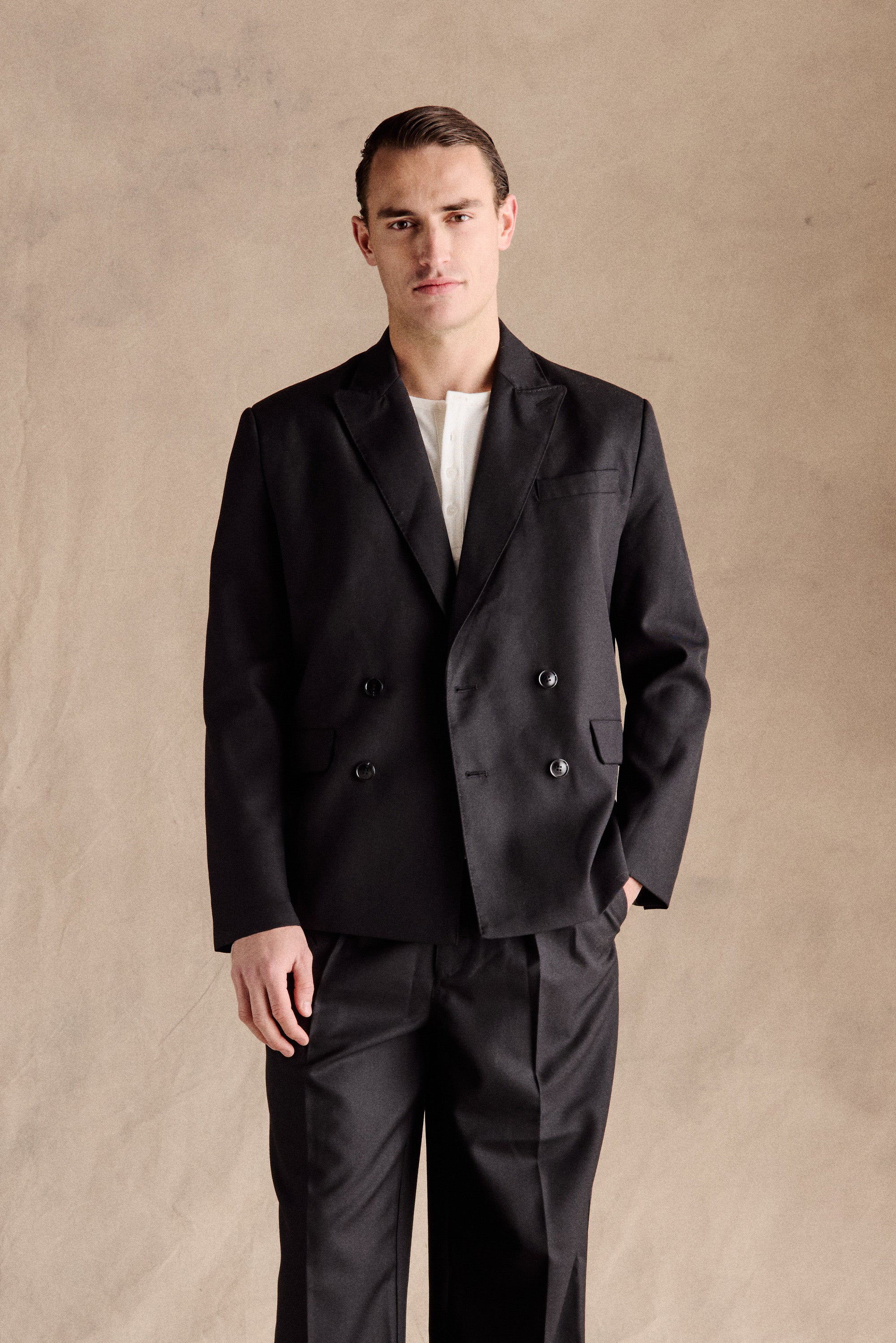 The John Double-Breasted Blazer in Black is inspired by 1990s relaxed formal wear, referencing the effortless tailored style of JFK Jr. Our take reinterprets the classic double-breasted design with a slightly relaxed fit, premium wool blend, and sharp, overlapping panels, delivering a confident yet approachable silhouette. A versatile wardrobe staple that works for both business and elevated casual outfits.