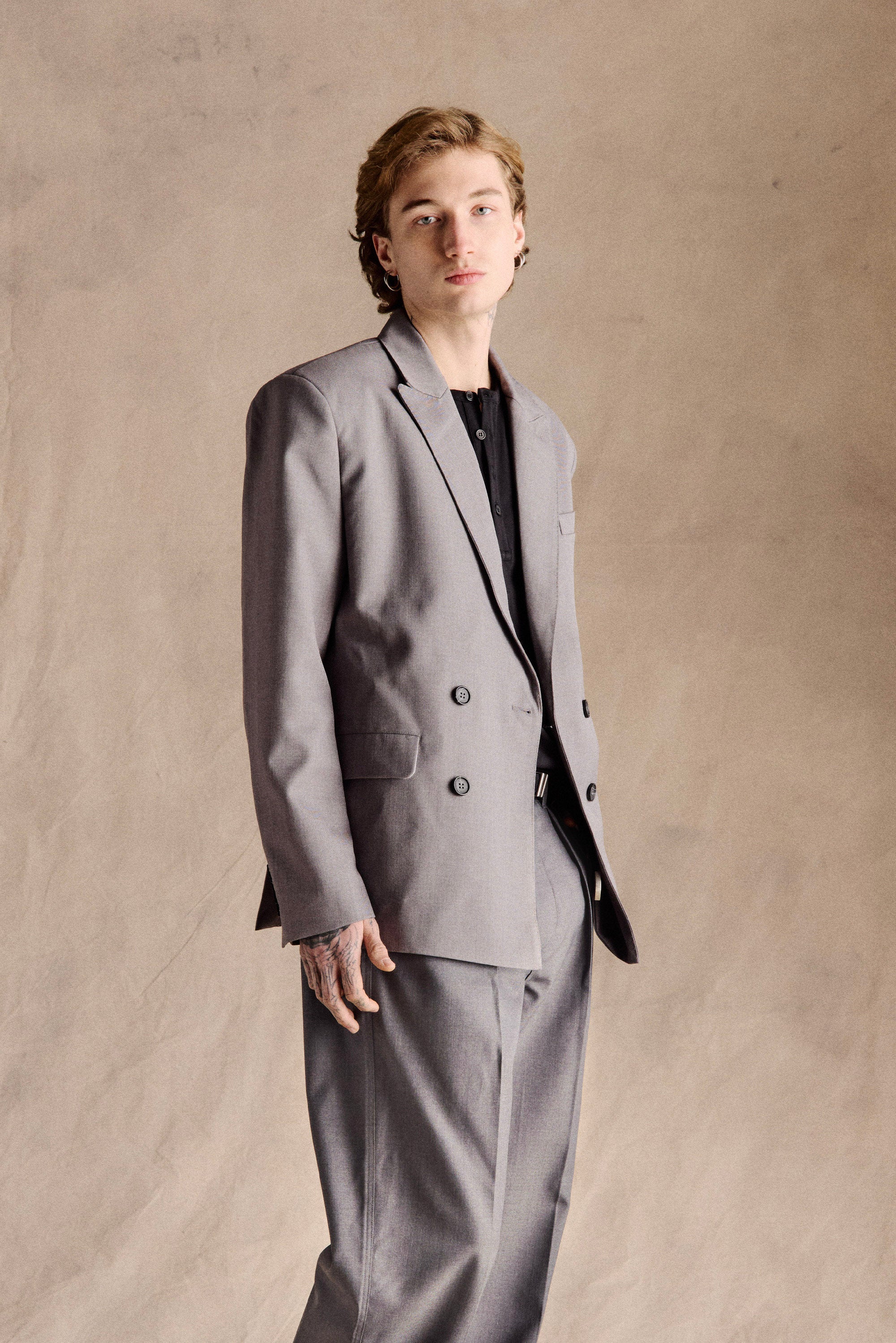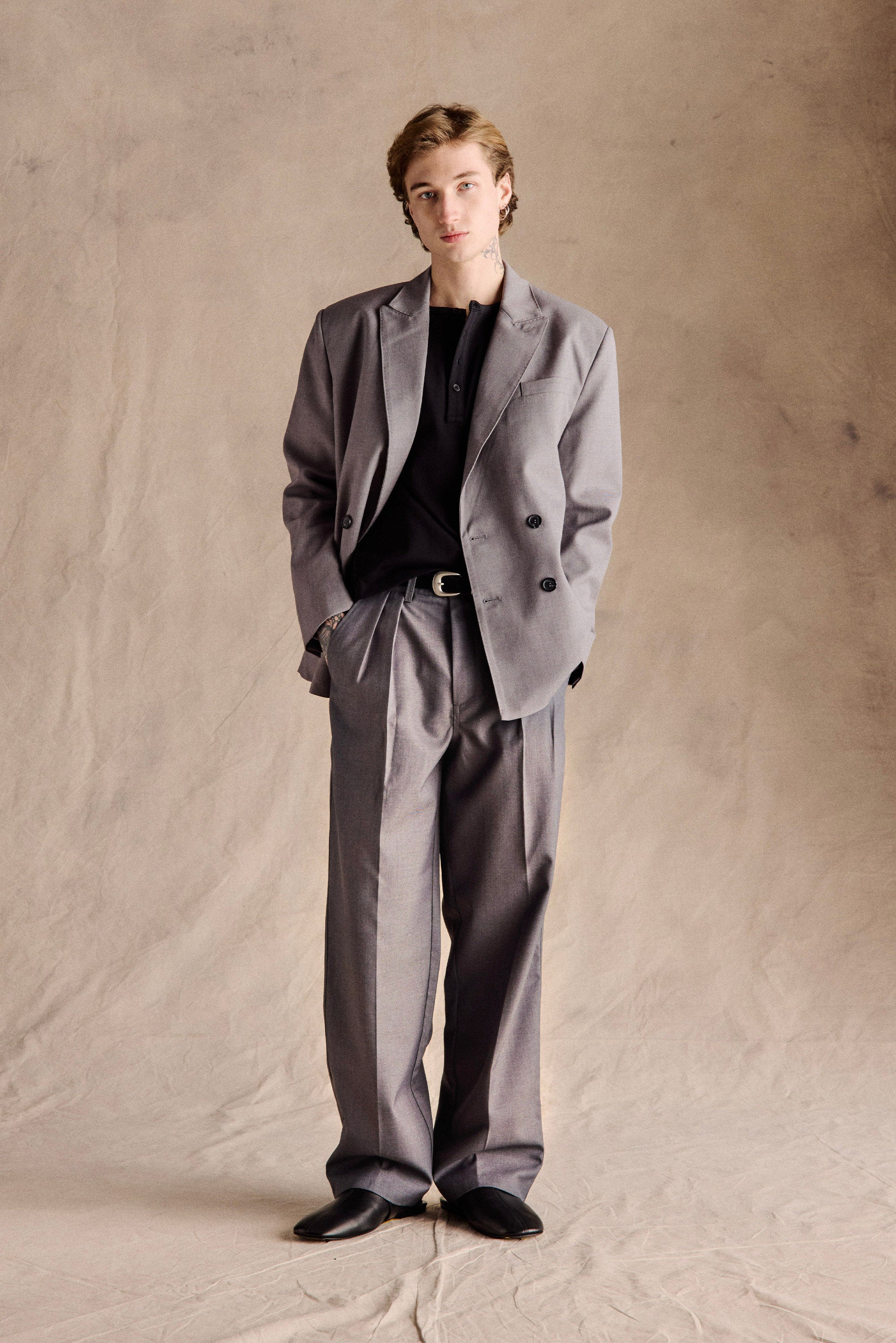 The John Double-Breasted Blazer in Grey is inspired by 1990s relaxed formal wear, referencing the effortless tailored style of JFK Jr. Our take reinterprets the classic double-breasted design with a slightly relaxed fit, premium wool blend, and sharp, overlapping panels, delivering a confident yet approachable silhouette. A versatile wardrobe staple that works for both business and elevated casual outfits.