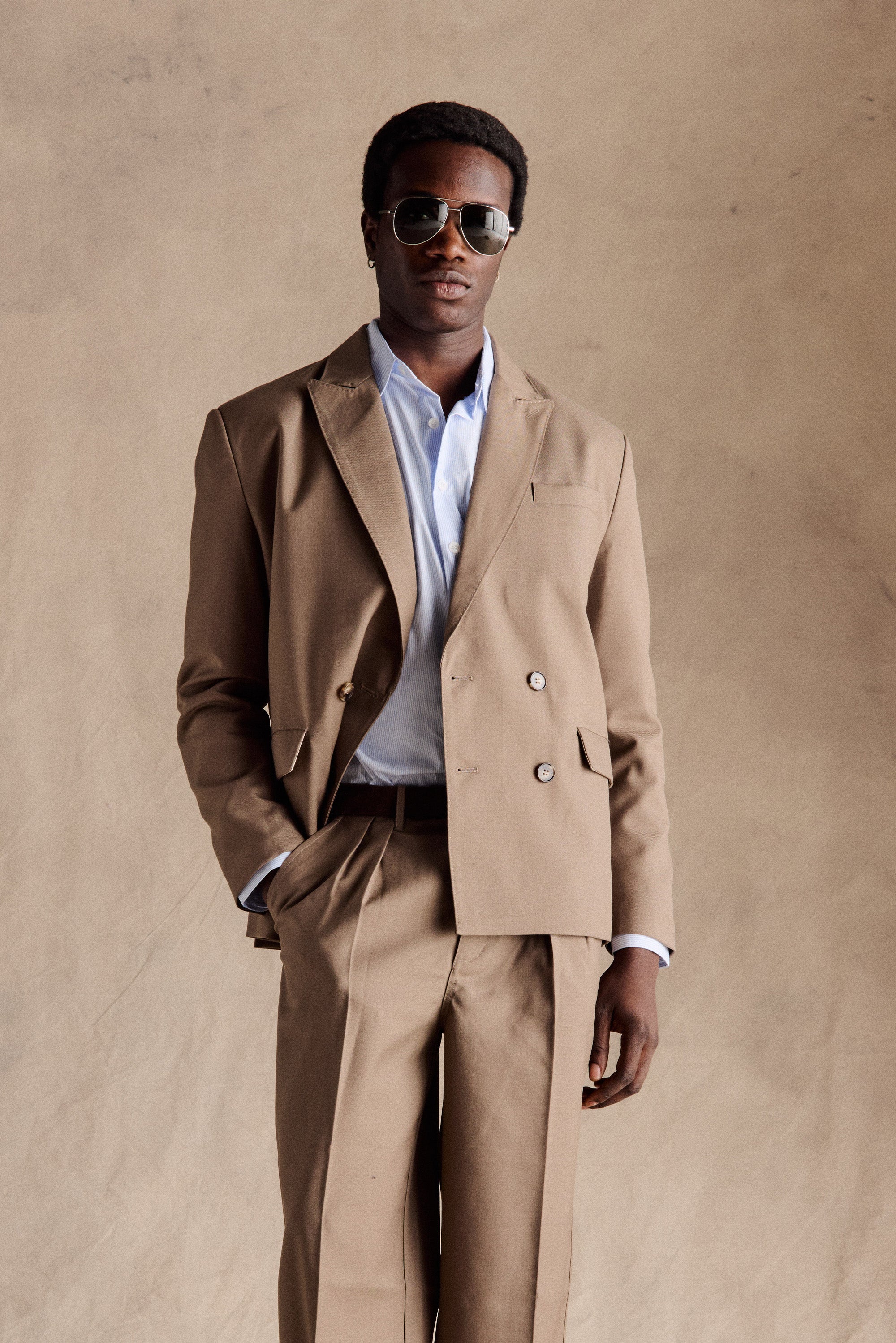 The John Double-Breasted Blazer in Light Brown is inspired by 1990s relaxed formal wear, referencing the effortless tailored style of JFK Jr. Our take reinterprets the classic double-breasted design with a slightly relaxed fit, premium wool blend, and sharp, overlapping panels, delivering a confident yet approachable silhouette. A versatile wardrobe staple that works for both business and elevated casual outfits.