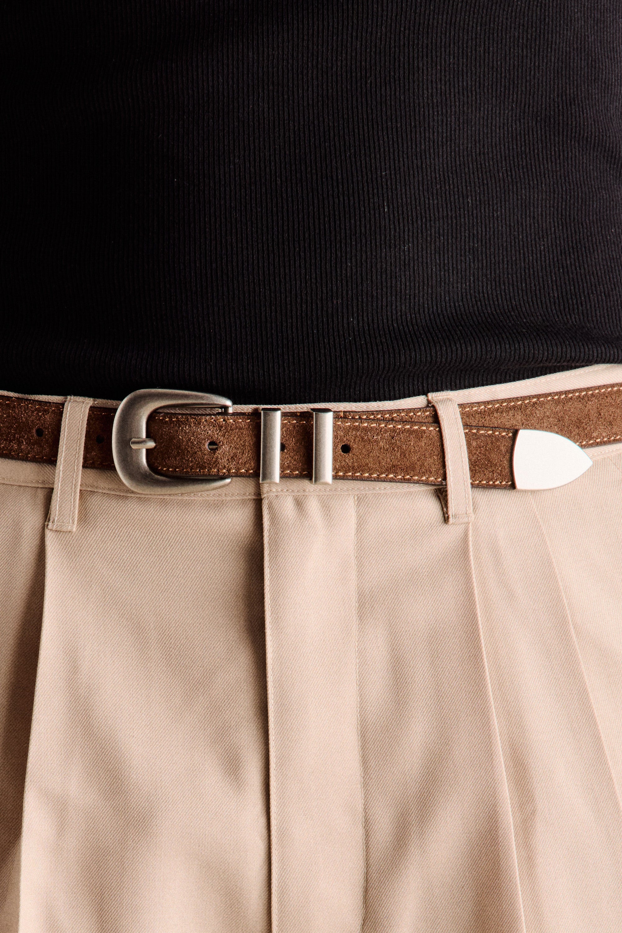 The Boone Suede Western Belt in Beige is inspired by 1970s Western-style accessories, when soft suede and subtle detailing defined understated cool. Crafted from 100% soft suede leather, it features a refined Western-inspired silver buckle, adding a vintage touch to any outfit. A versatile belt that works with both casual and tailored looks.