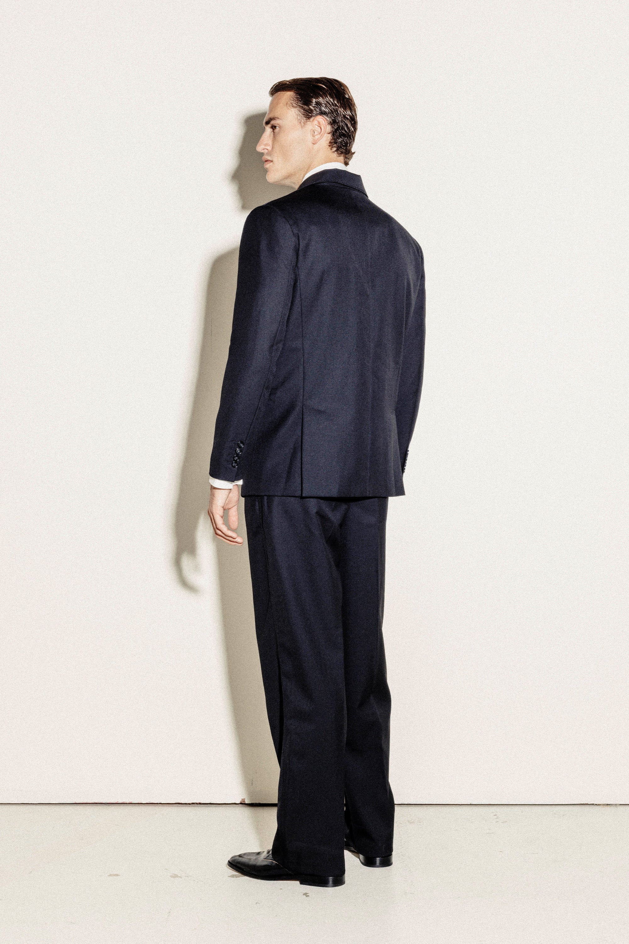 Our Full Relaxed Suit in Black is a statement of confidence, inspired by 1990s formal wear. With its slightly relaxed fit, it maintains a sharp and elegant silhouette, crafted from a premium wool blend for an authentic 90s Wall Street look.