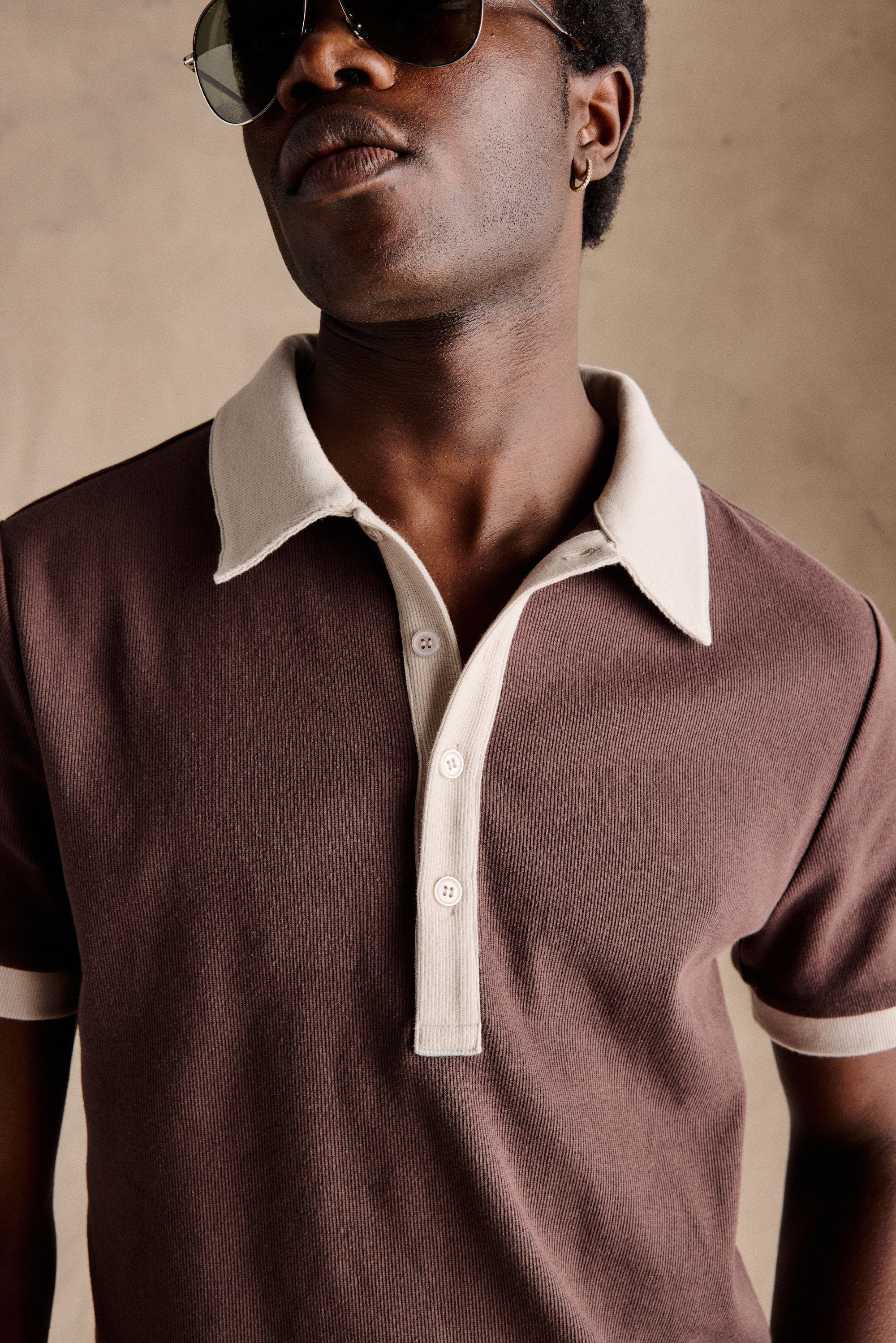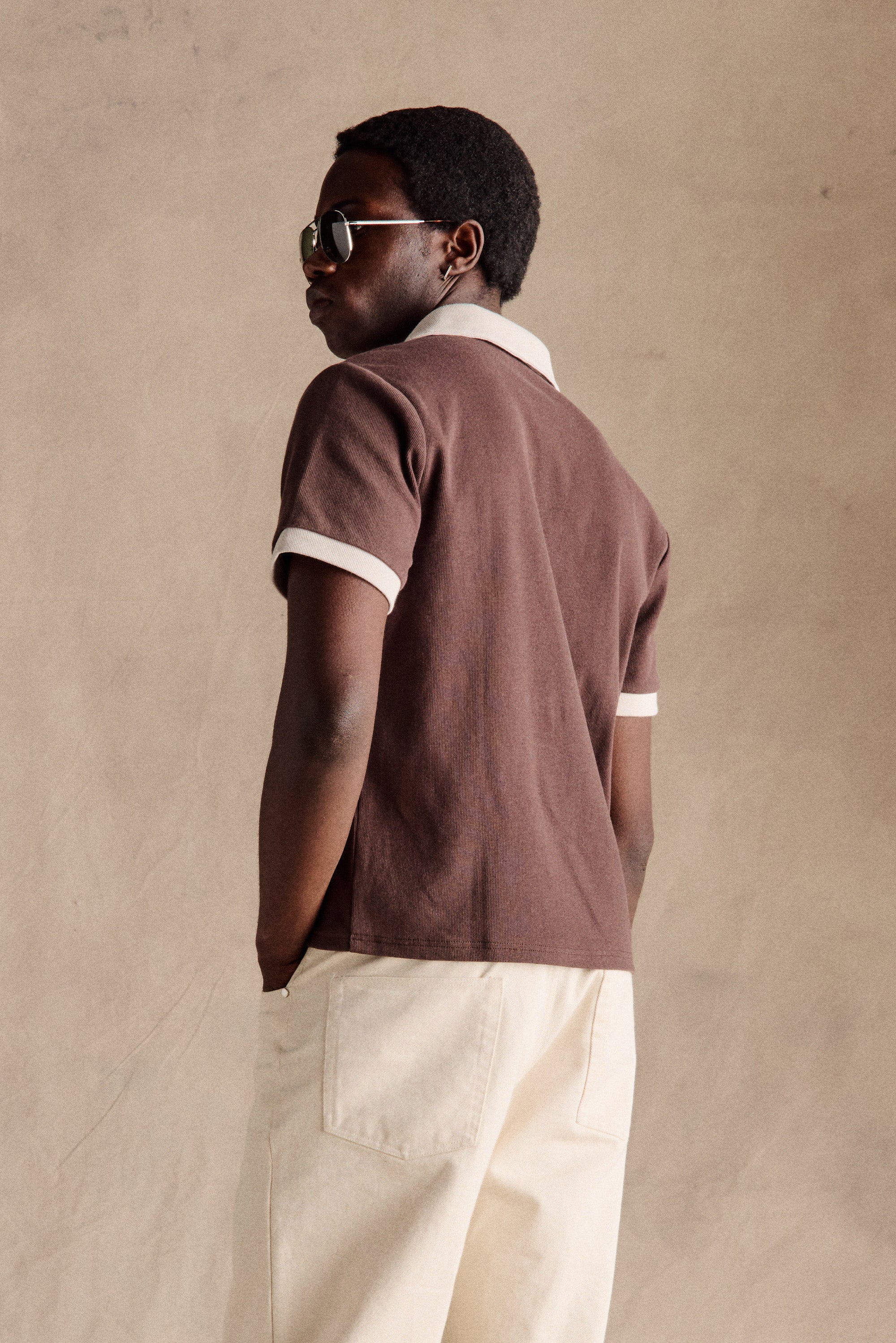 The Johan Trimmed Polo in Brown is inspired by the 1970s football style of Dutch icon Johan Cruyff, who frequently wore this exact silhouette. Defined by its low front placket with five buttons, typical of original 70s polos, our take reinterprets this classic using heavyweight ribbed cotton and subtle contrast trims for a refined yet nostalgic finish.