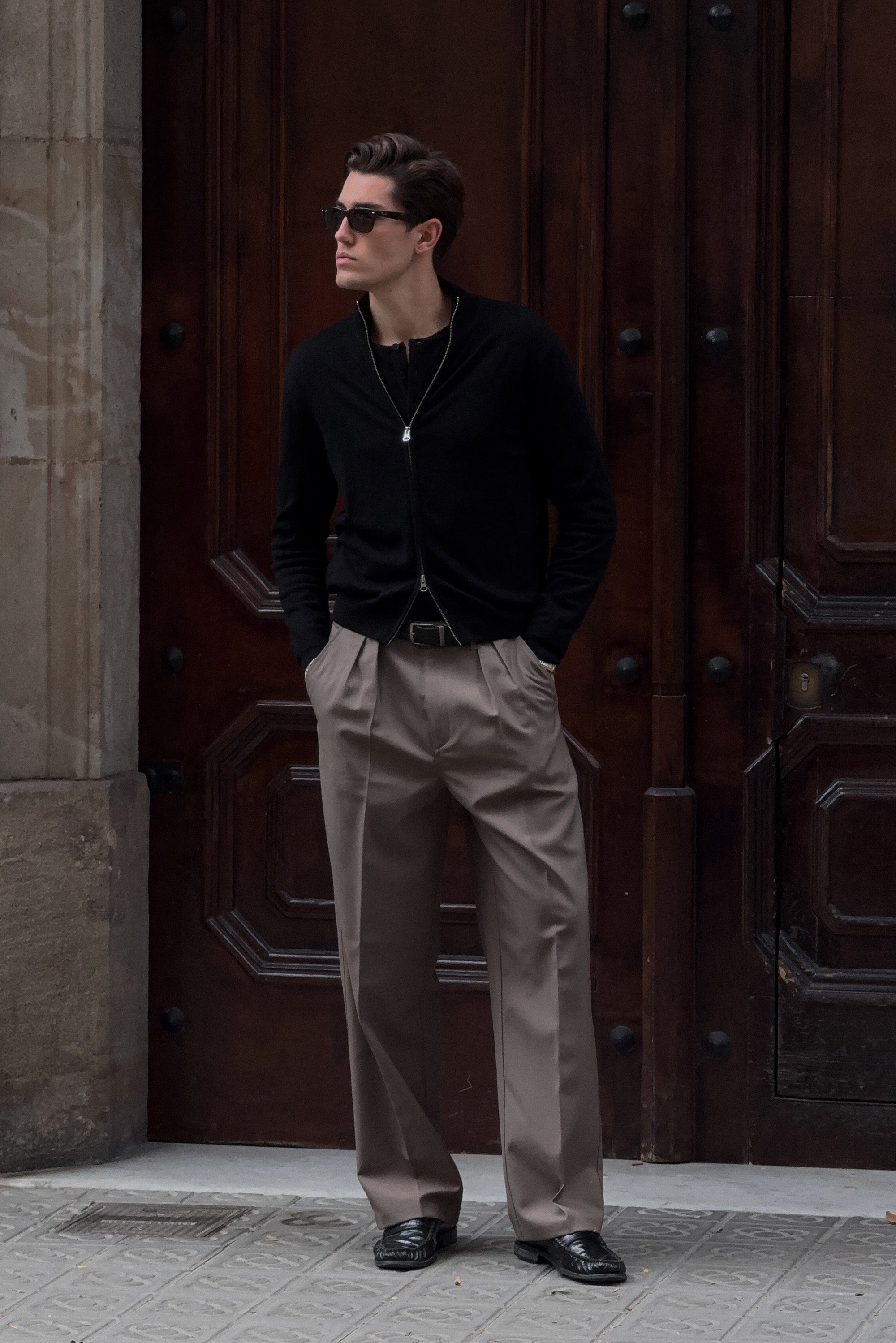 Our Relaxed Pleated Trousers in Light Brown embody the effortless minimalism of the 1990s, recalling the easy, understated style of the decade.