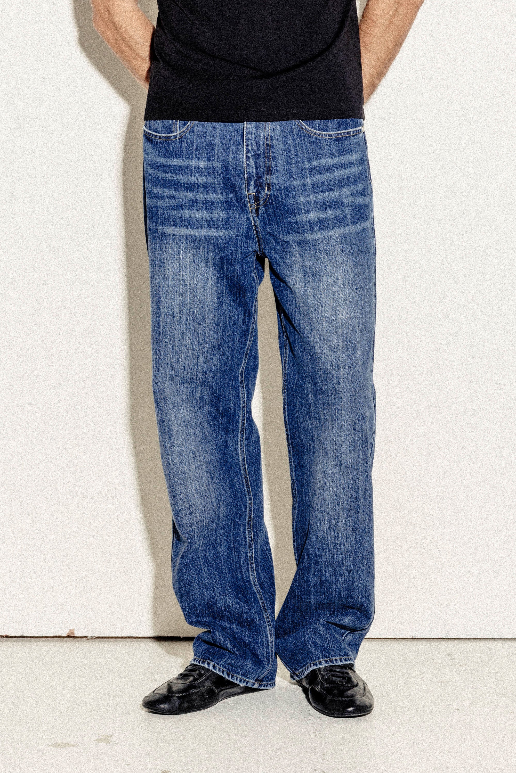Our Wide Leg Jeans in Dark Blue are inspired by 1990s denim, capturing the relaxed yet refined style of the era. The subtle worn-in finish gives them an authentic, lived-in character, making them an everyday wardrobe essential.