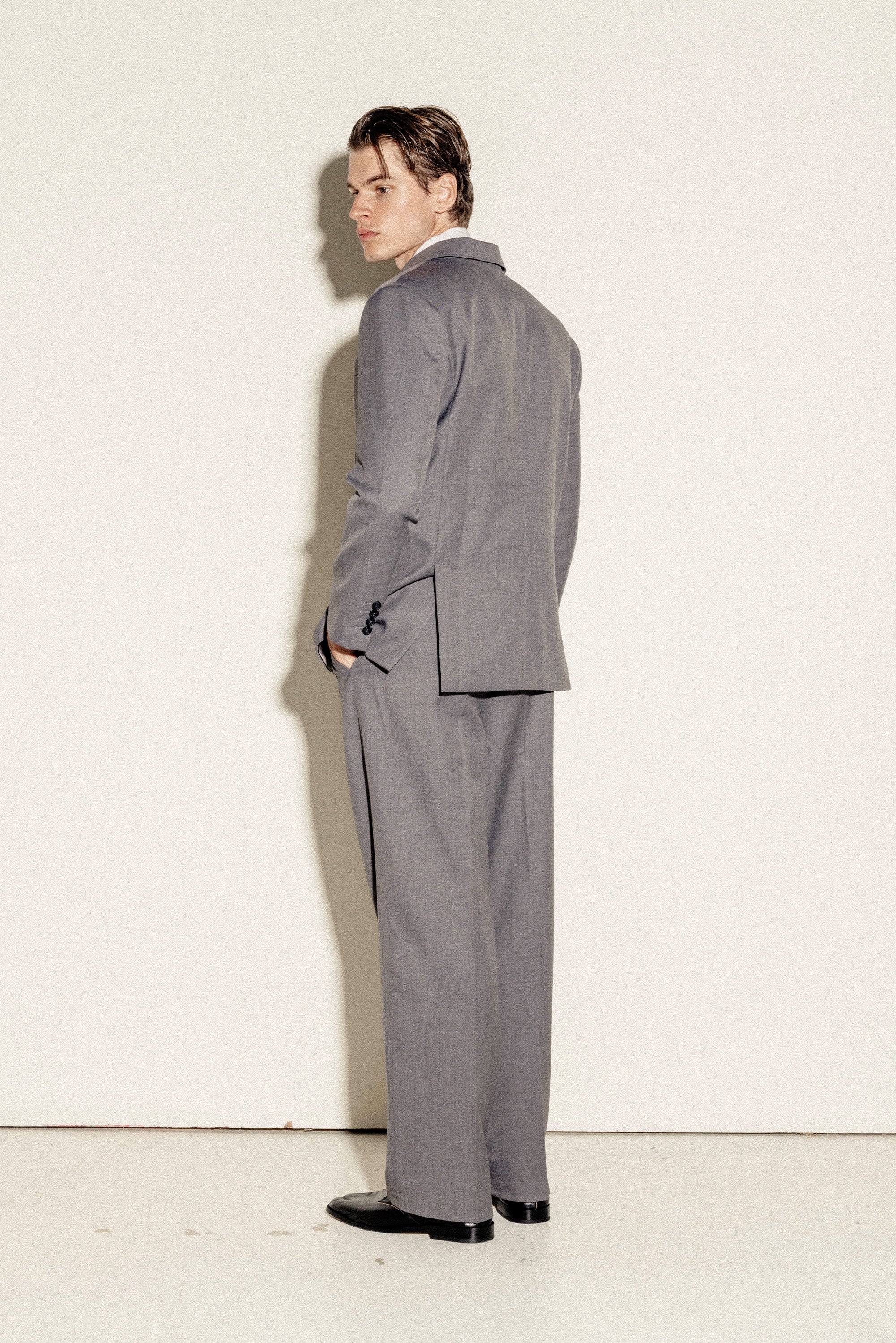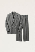 Our Full Relaxed Suit in Grey is a statement of confidence, inspired by 1990s formal wear. With its slightly relaxed fit, it maintains a sharp and elegant silhouette, crafted from a premium wool blend for an authentic 90s Wall Street look.