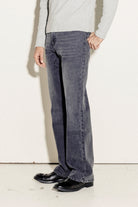 Our Bootcut Denim Jeans in Charcoal are inspired by 1970s denim, featuring a bootcut fit and slightly higher rise. The subtle flared hem rests just above the ground, allowing the denim to shape effortlessly around the shoe. The vintage charcoal wash gives these jeans a worn-in character, perfect for a timeless look.