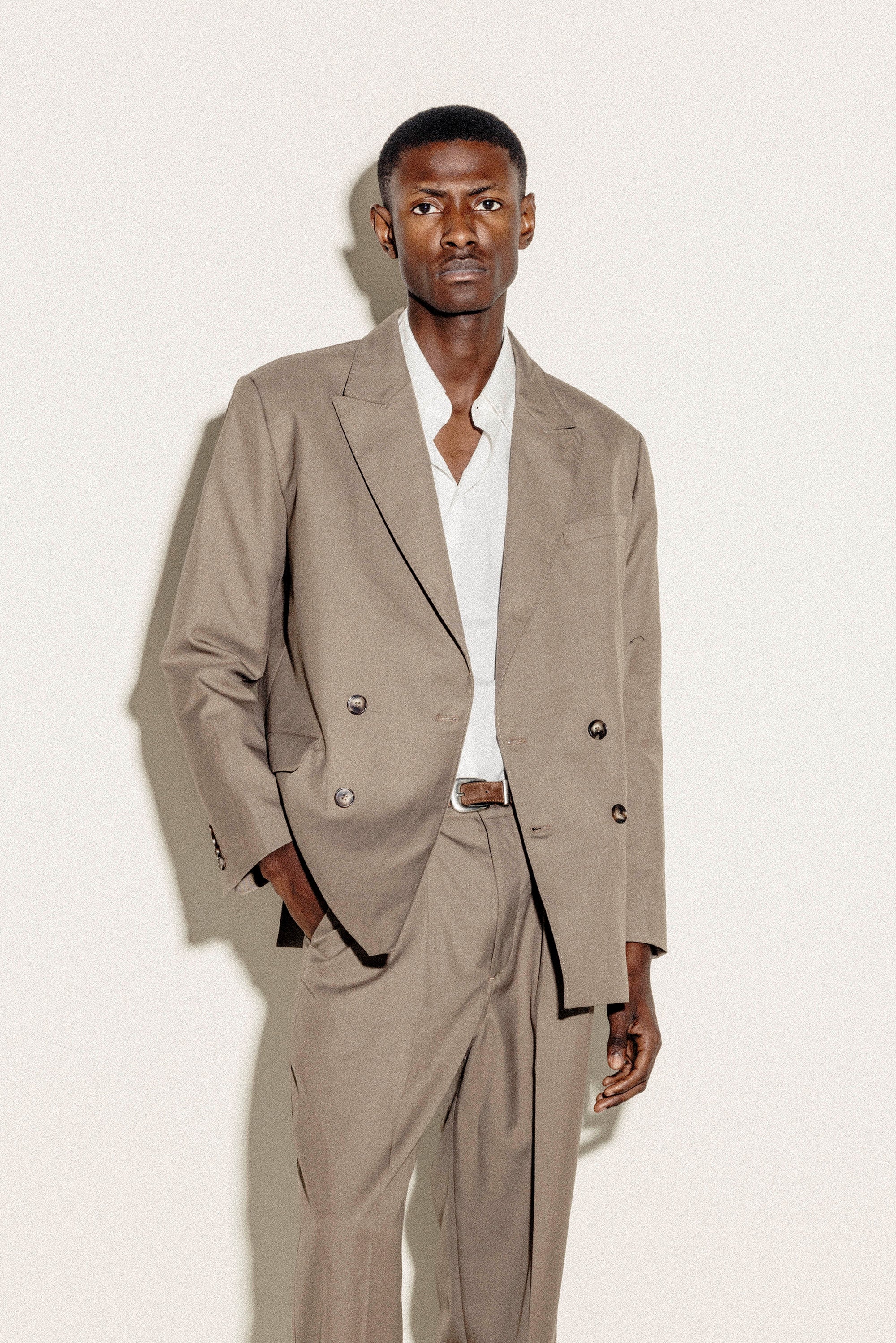 Our Double-Breasted Blazer in Light Brown is a statement of confidence, inspired by 1990s formal wear. The slightly relaxed fit maintains sharp elegance, tailored with two overlapping panels in a premium wool blend. Pair it with our Relaxed Pleated Trousers for a true 90s Wall Street look, or dress it down with Bootcut Denim Jeans for an elevated everyday outfit.
