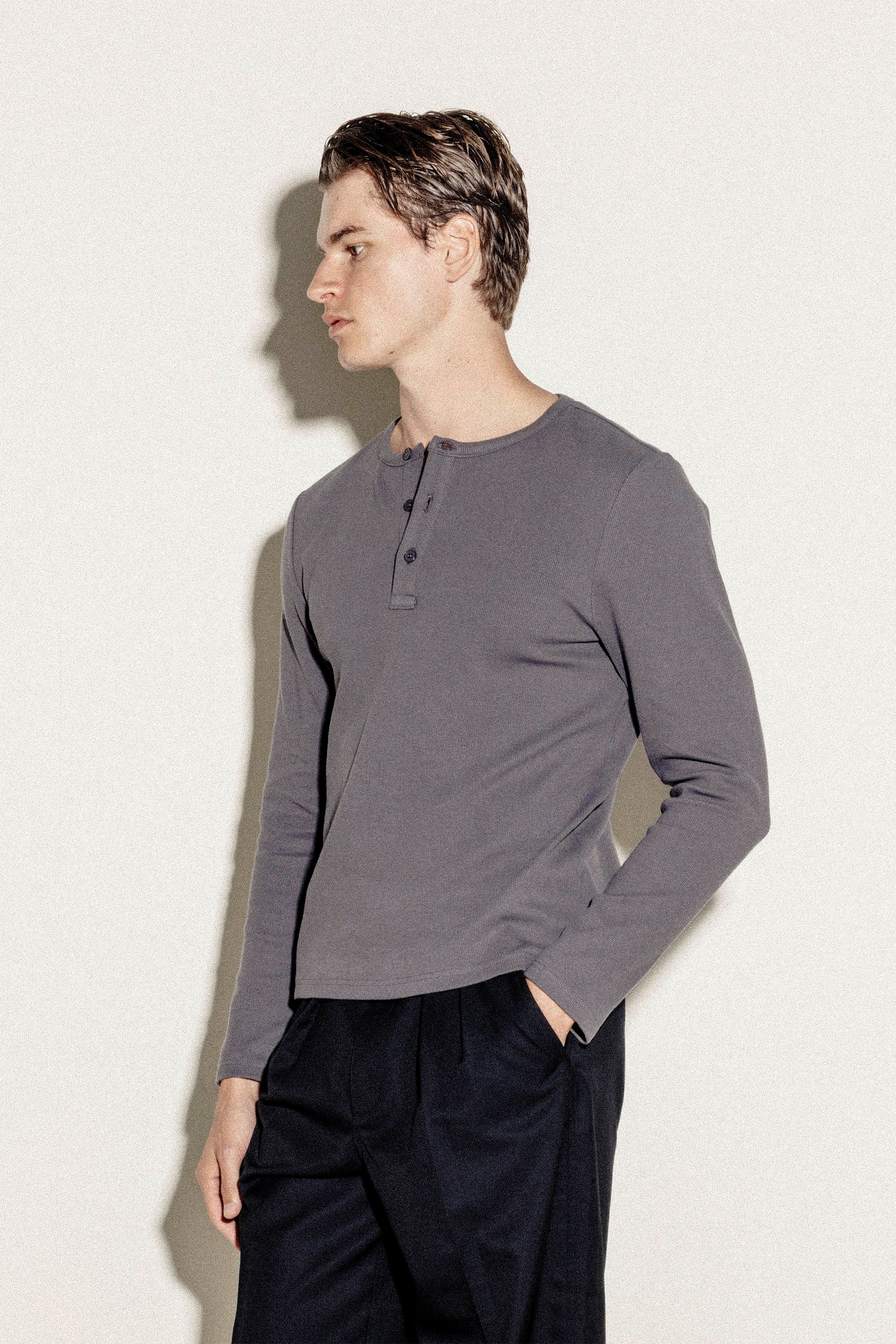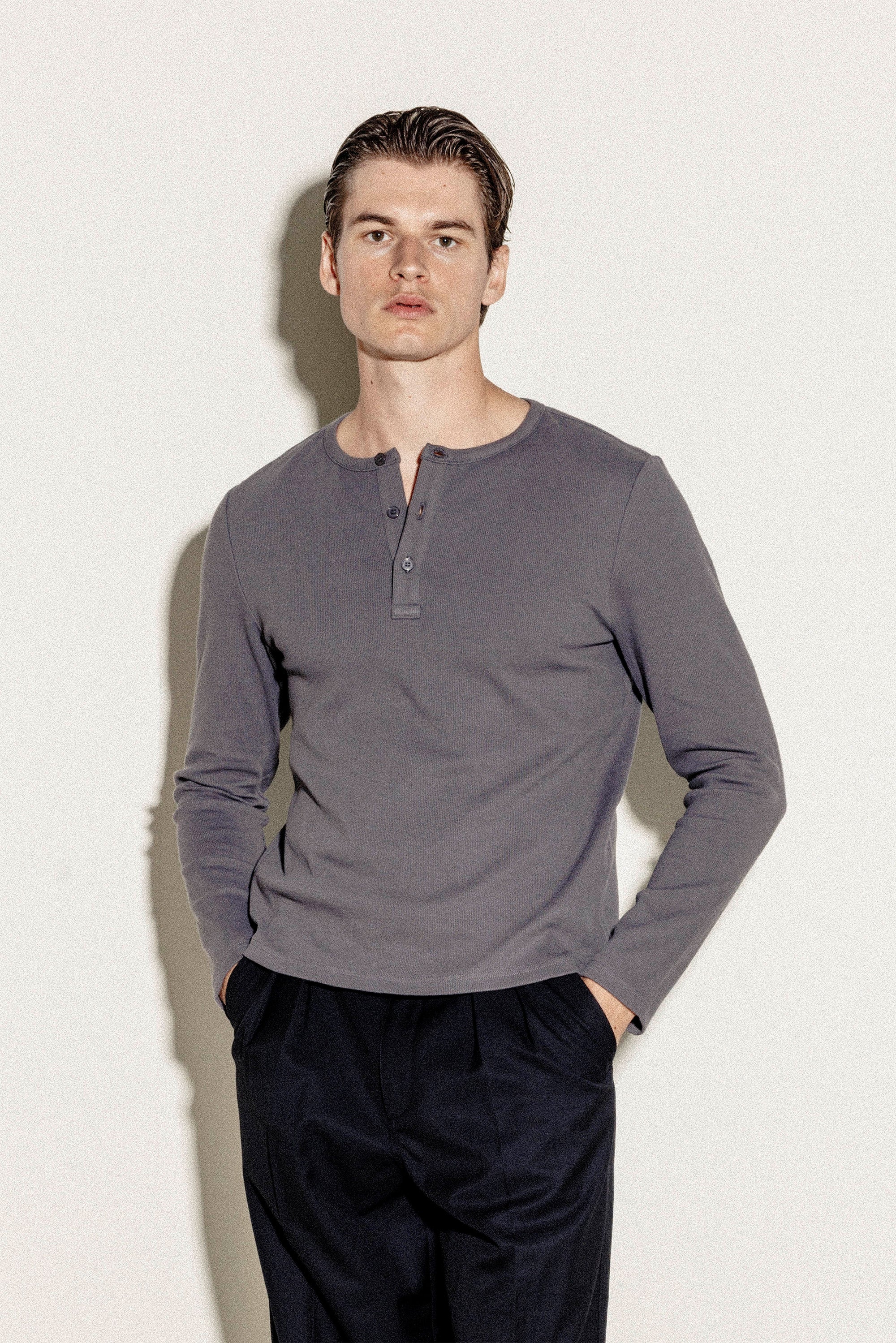 Our bestselling Henley Shirt in Smoke is inspired by its 19th-century English rowing heritage, a collarless design originally created for freedom of movement. The slim fit, ribbed texture and signature three-button closure combine classic style with a modern silhouette.