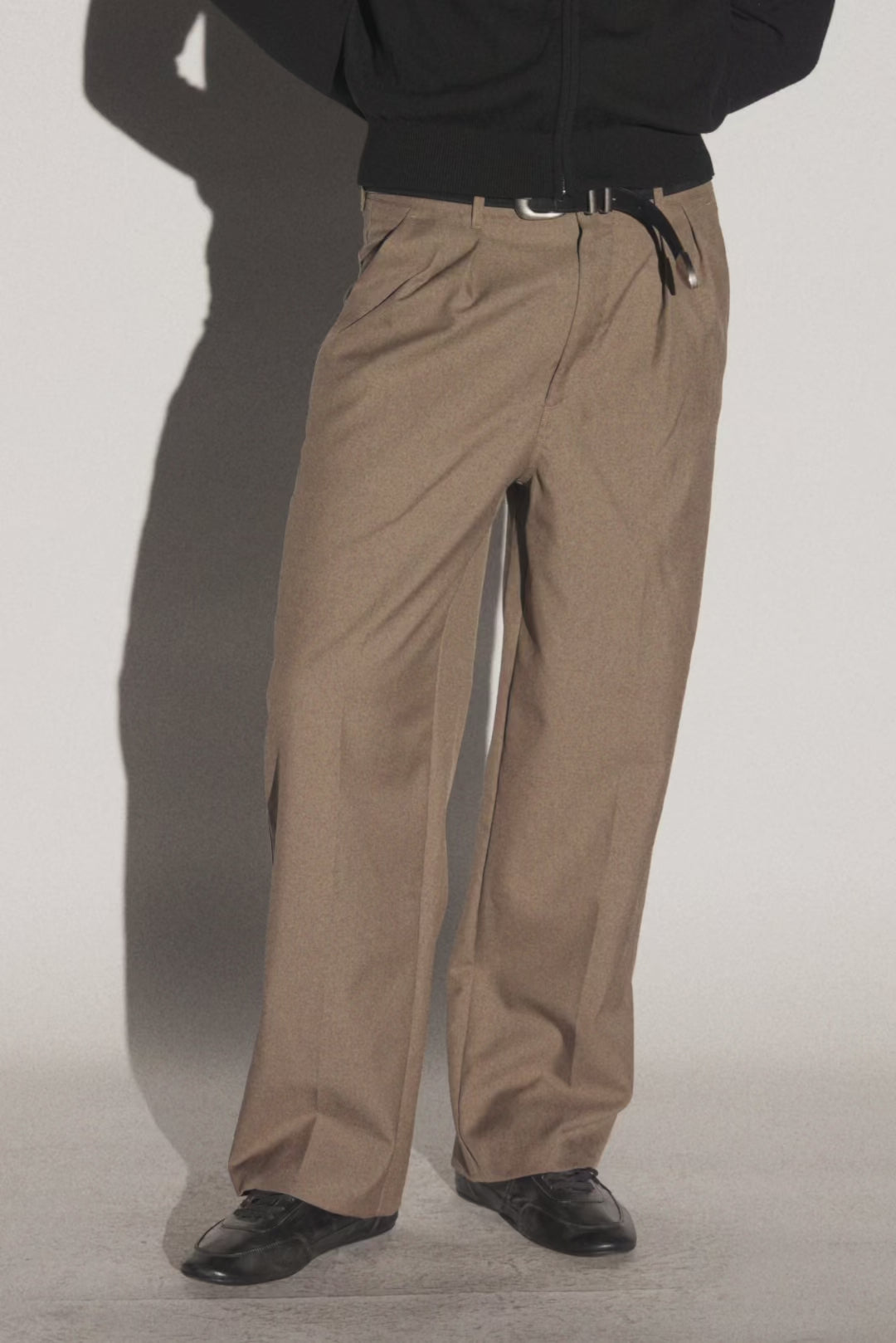Our Relaxed Pleated Trousers in Light Brown embody the effortless minimalism of the 1990s, recalling the easy, understated style of the decade.