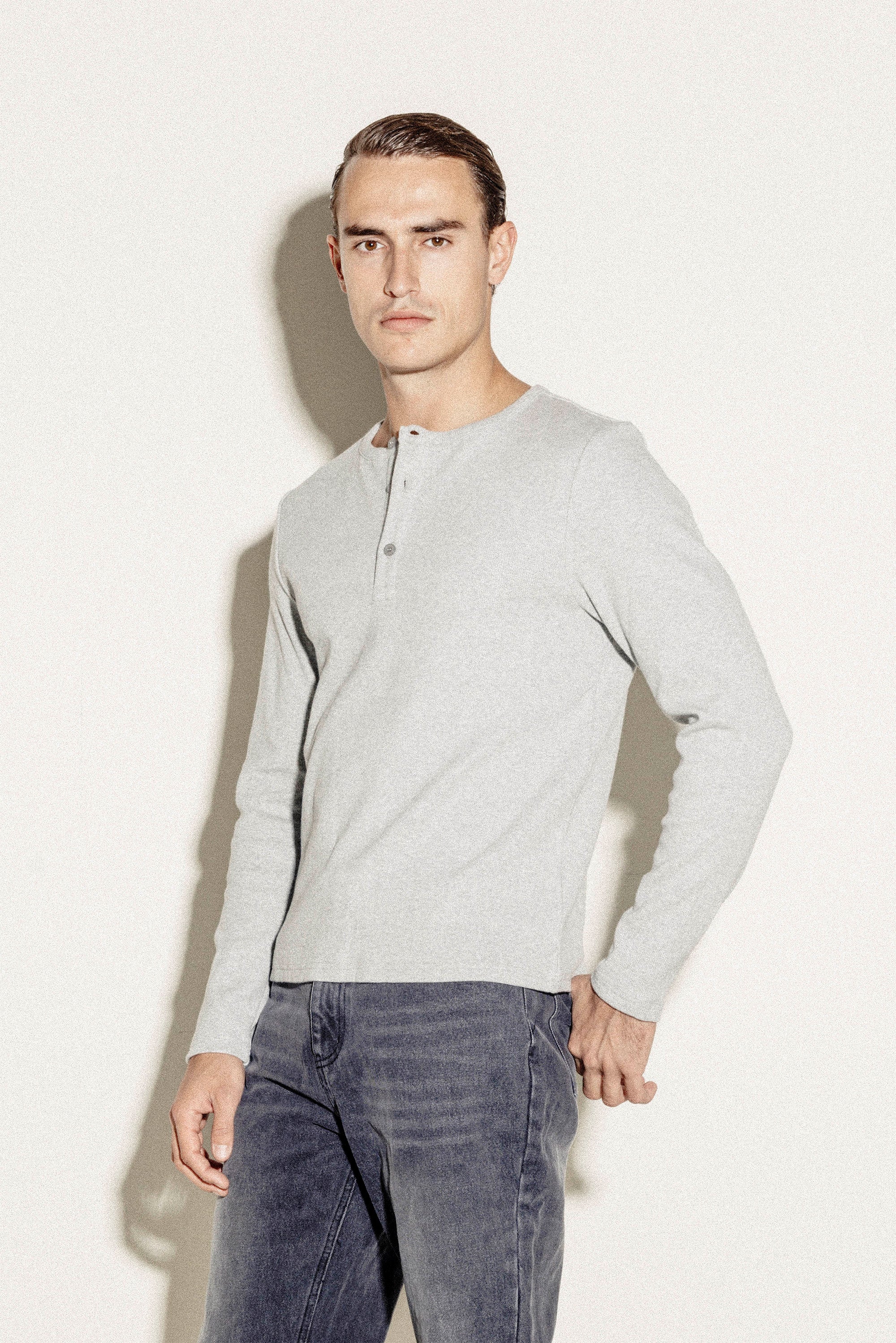 Our bestselling Henley Shirt in Grey is inspired by its 19th-century English rowing heritage, a collarless design originally created for freedom of movement. The slim fit, ribbed texture and signature three-button closure combine classic style with a modern silhouette.