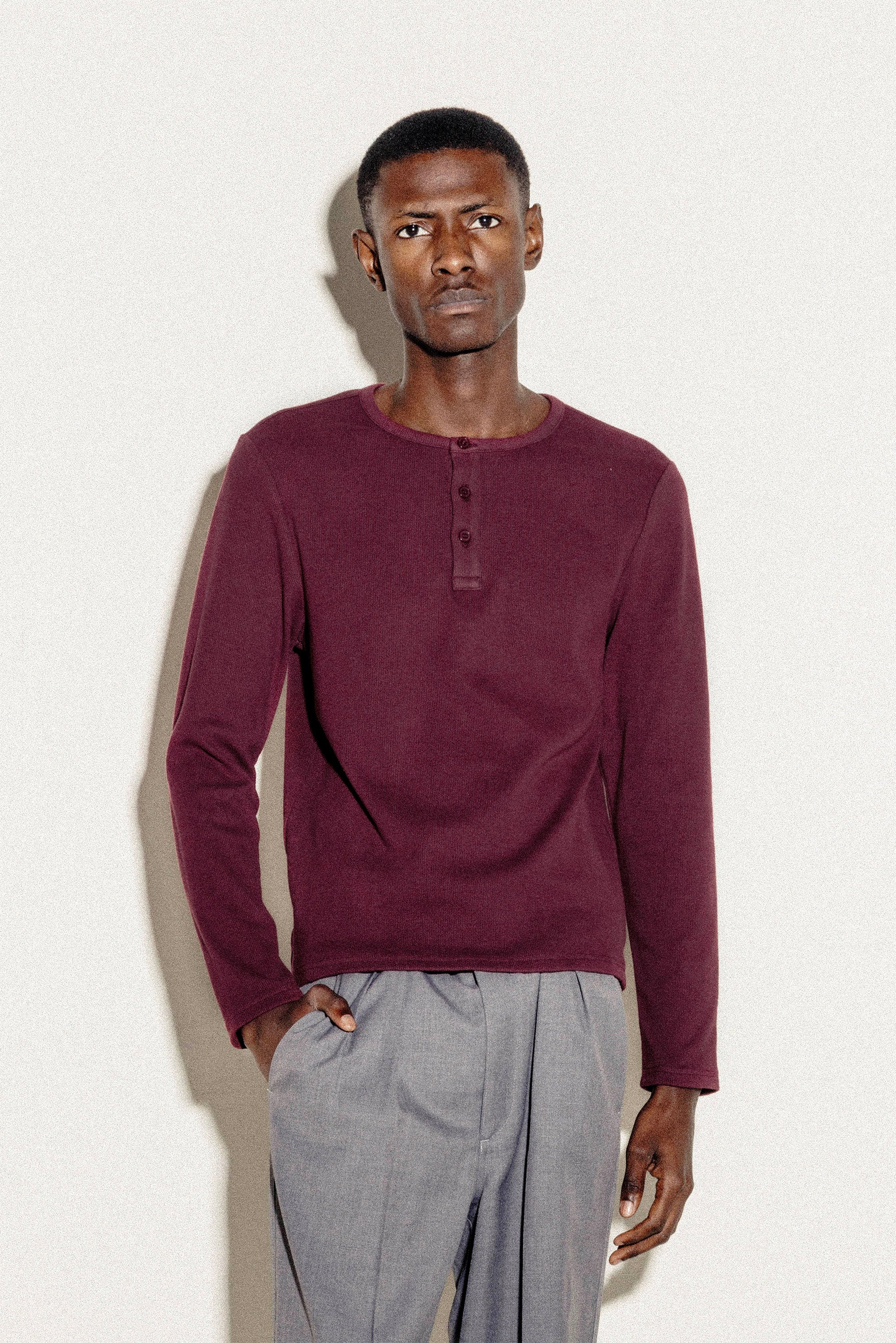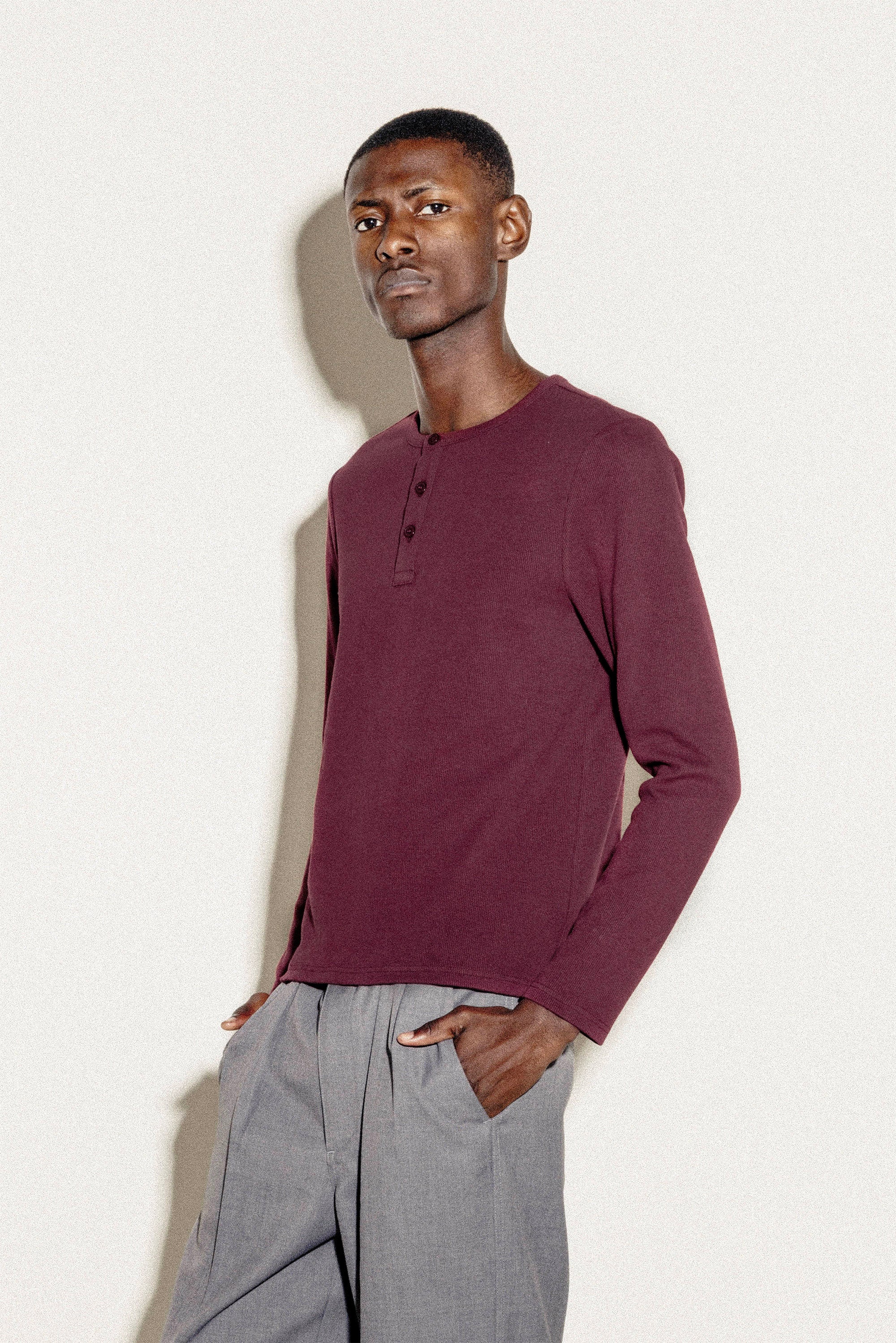 Our bestselling Henley Shirt in Burgundy Red is inspired by its 19th-century English rowing heritage, a collarless design originally created for freedom of movement. The slim fit, ribbed texture and signature three-button closure combine classic style with a modern silhouette.