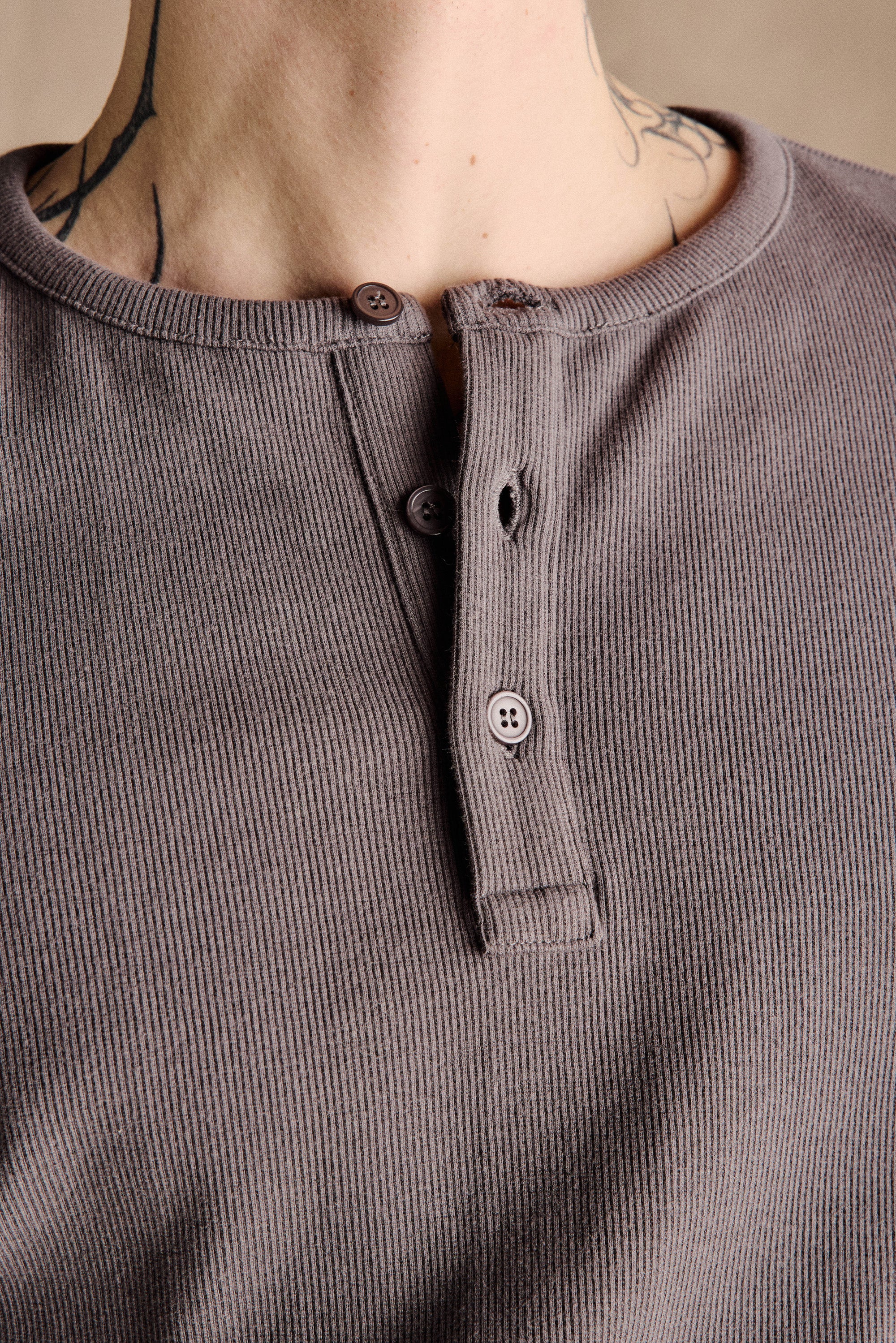 Ribbed Henley Shirt | Smoke