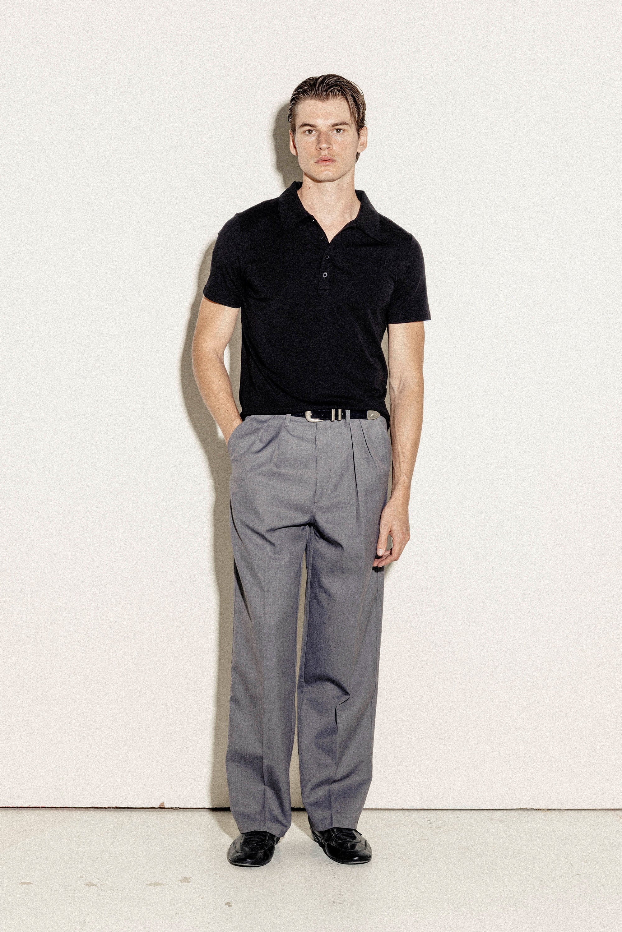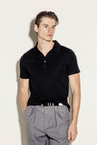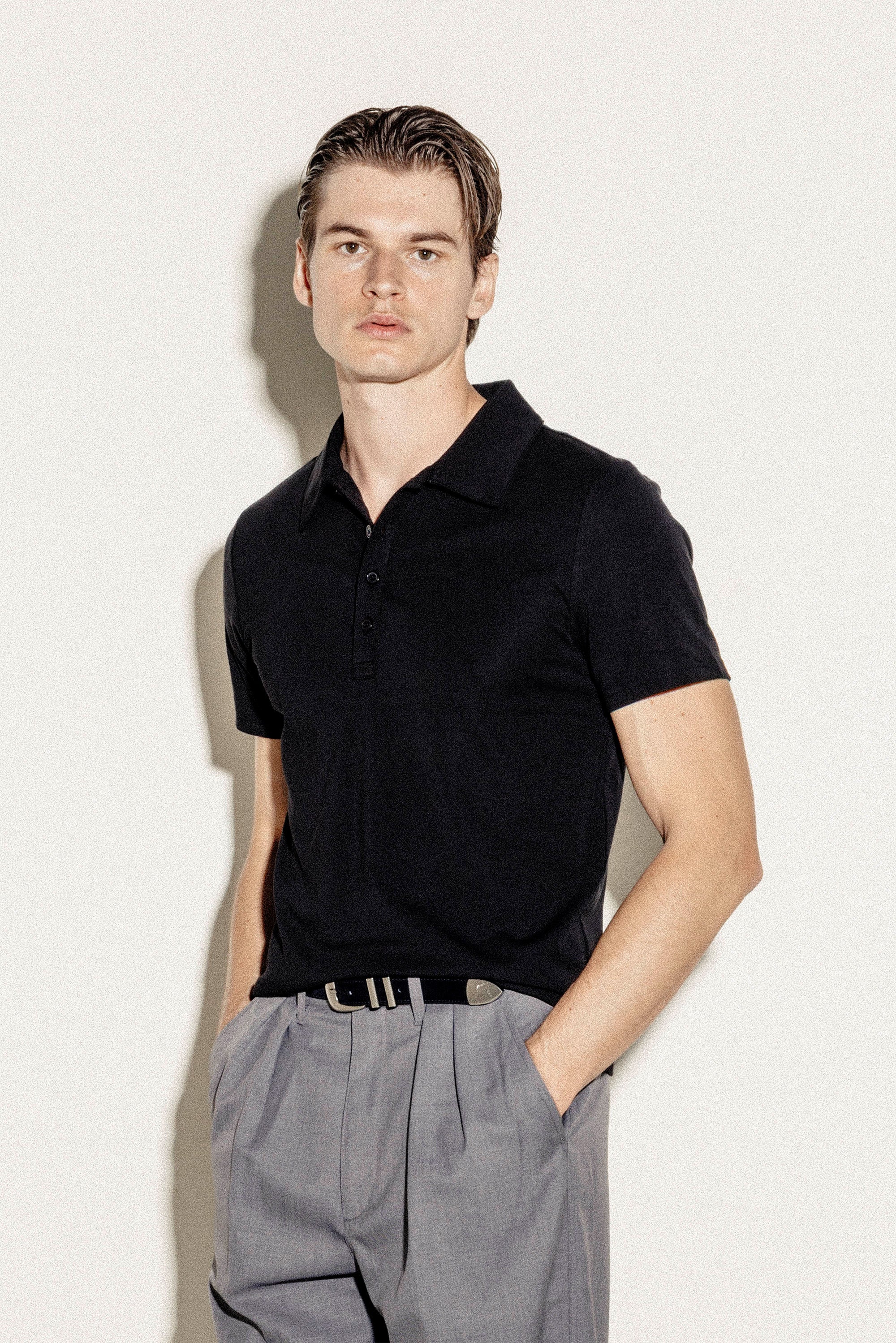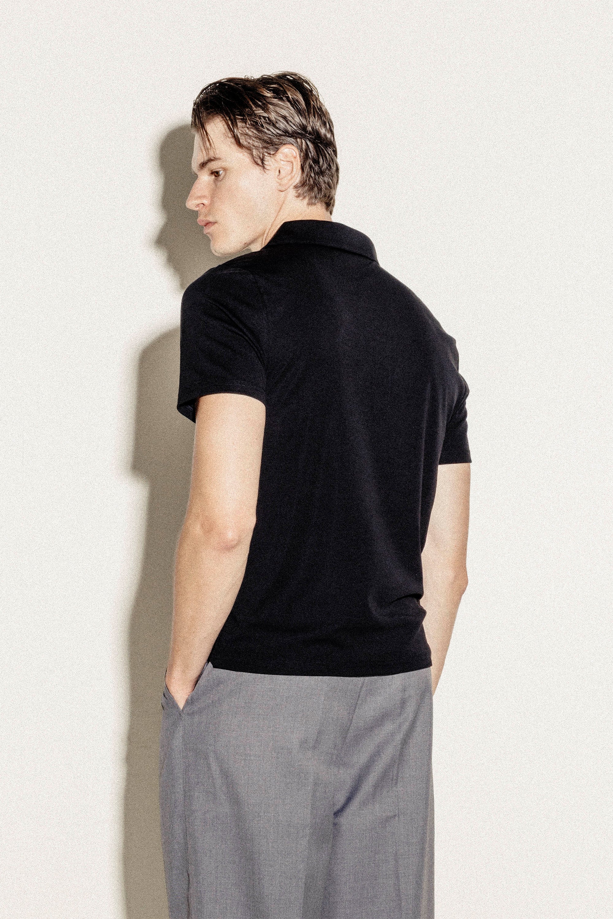Our Polo Shirt in Black offers a classic look with a modern twist. The wider collar and slim fit take inspiration from the grooving days of the 1970s.
