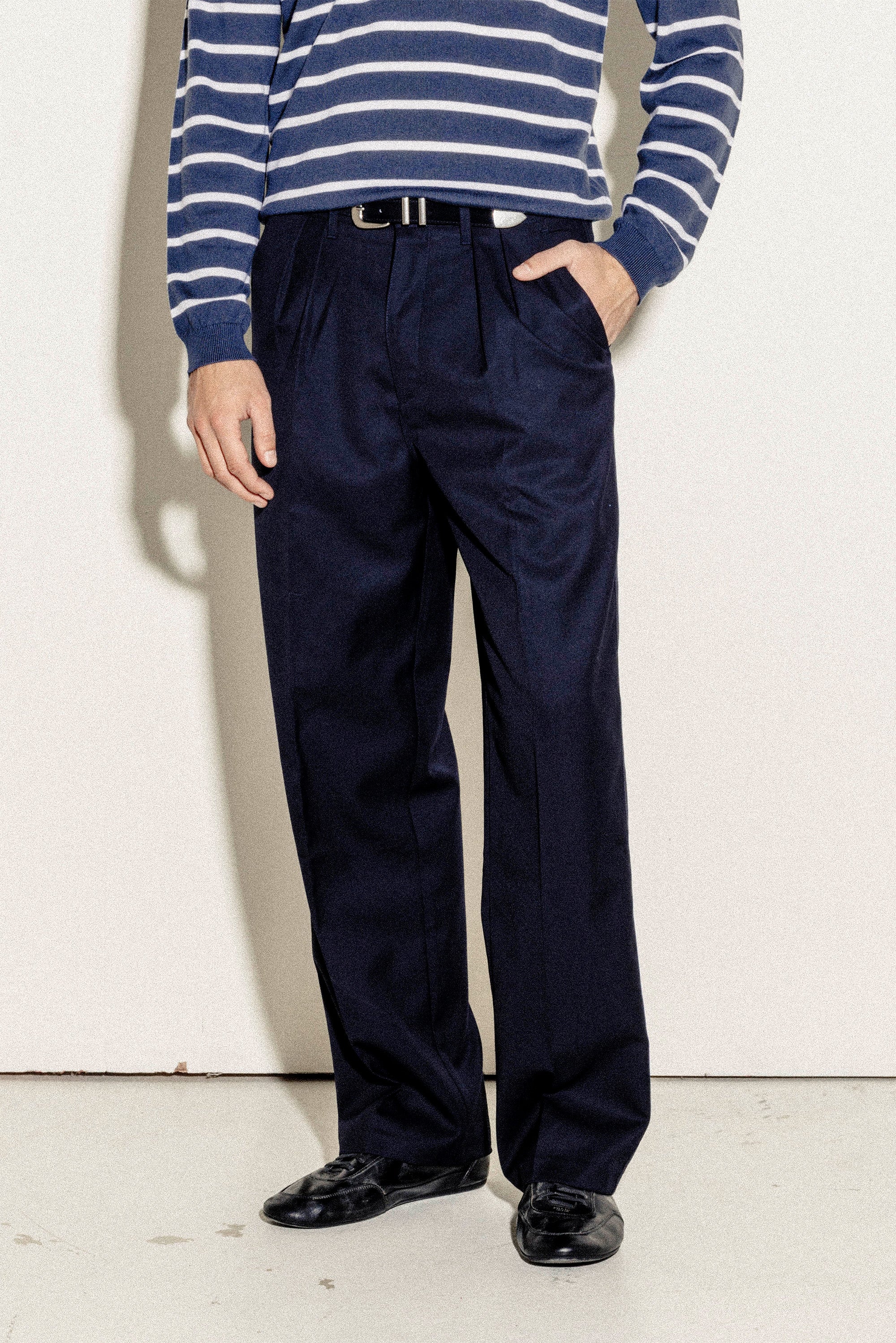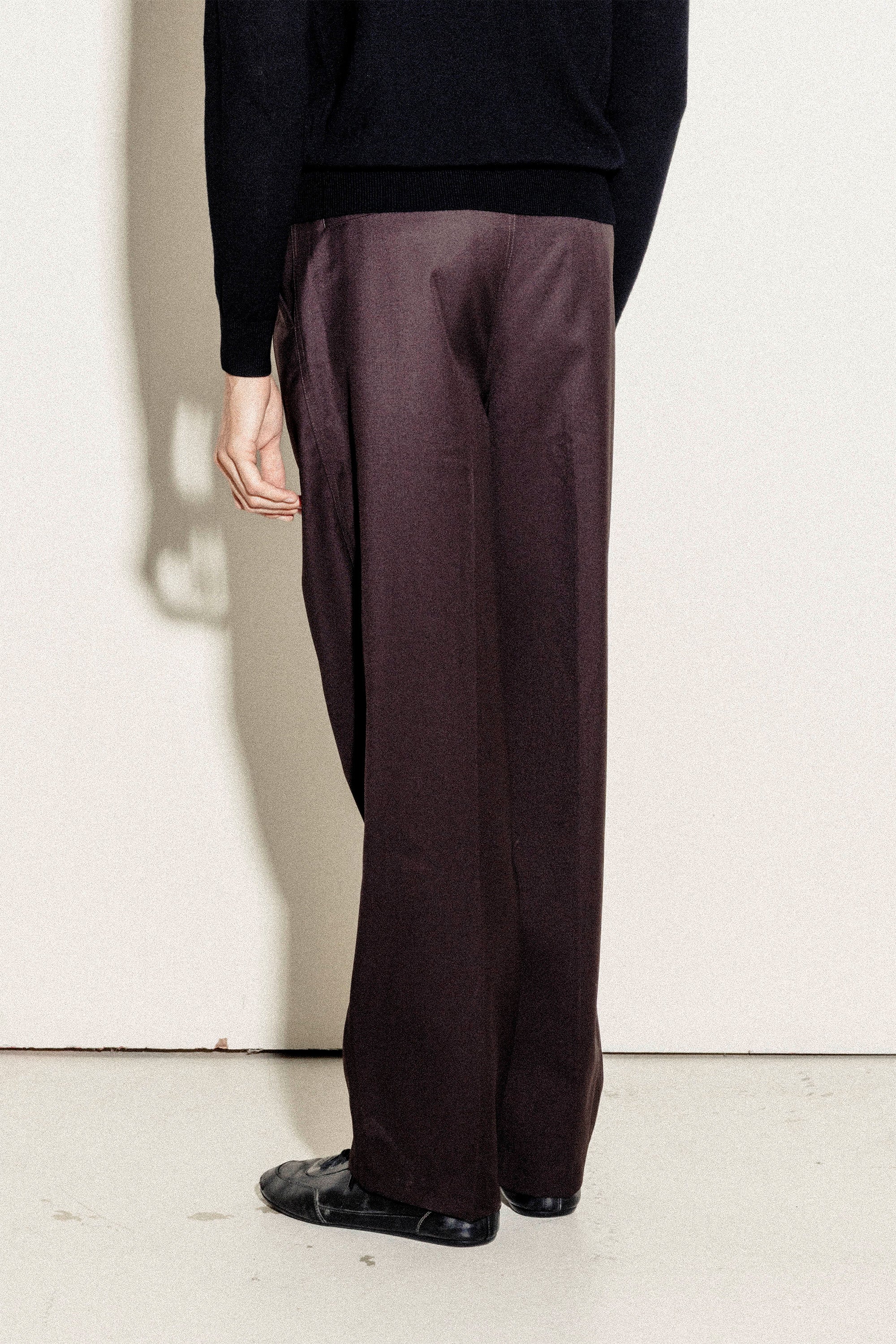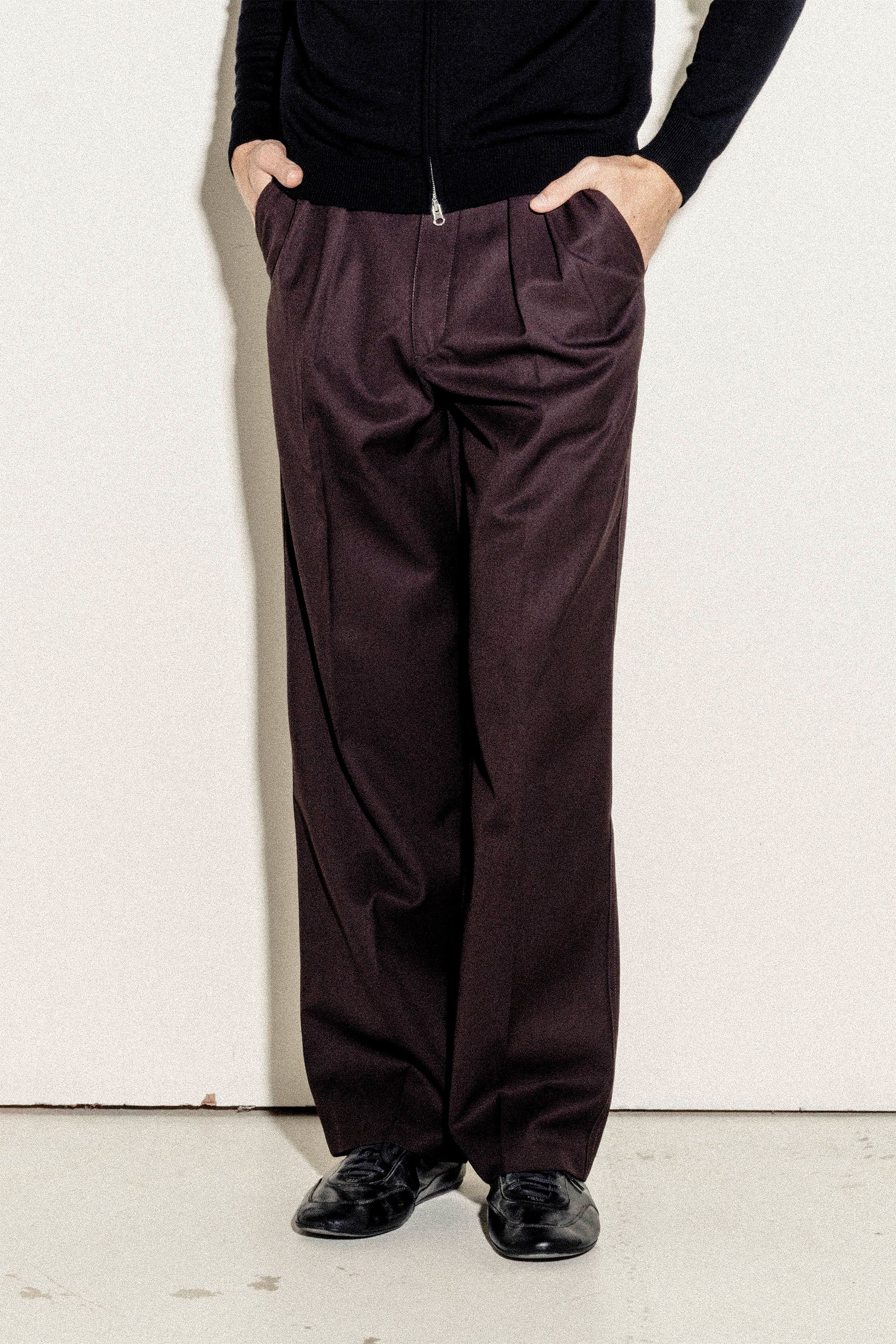 Our Relaxed Pleated Trousers in Dark Brown embody the effortless minimalism of the 1990s, recalling the easy, understated style of the decade.