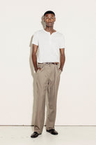 Our Relaxed Pleated Trousers in Light Brown embody the effortless minimalism of the 1990s, recalling the easy, understated style of the decade.