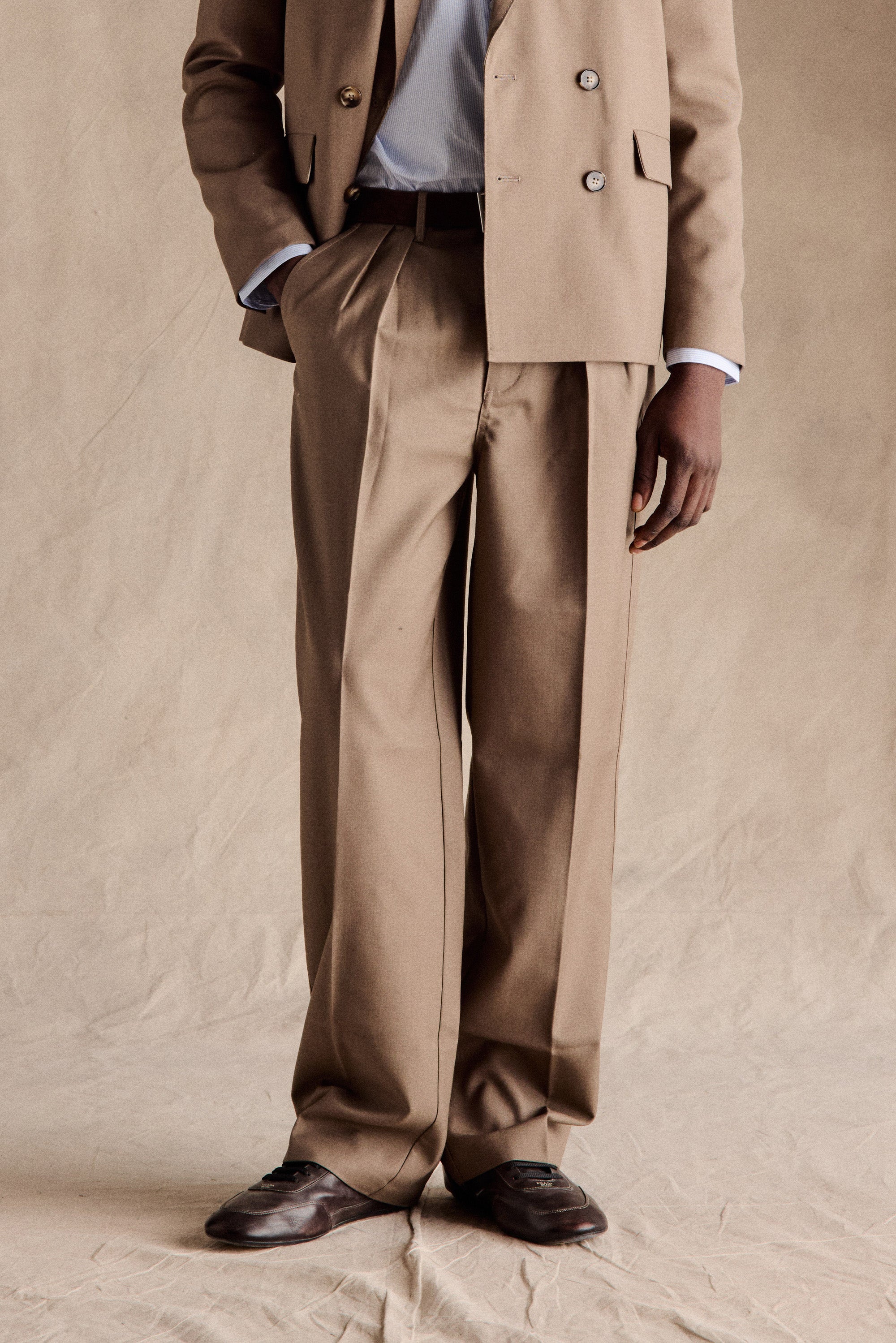 Our bestselling Manhattan Pleated Trousers in Light Brown are inspired by the effortless, understated style of the 1990s, recalling the easy, understated style of the decade. Our take reinterprets the classic pleated design in a premium wool blend with a relaxed straight-leg silhouette, giving them refined tailoring and versatile wearability. A wardrobe essential that combines luxury materials with everyday practicality.