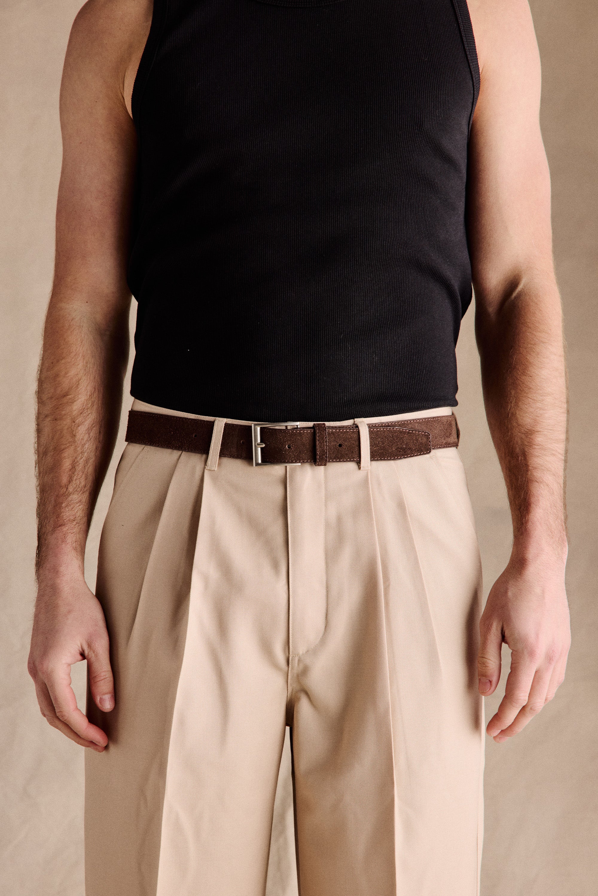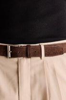 The Slate Suede Square Belt in Brown is inspired by 1990s casual tailoring and understated accessories. Made from 100% soft suede leather, it features a sleek square silver buckle for a clean, versatile finish. A timeless accessory that complements both casual and polished outfits.