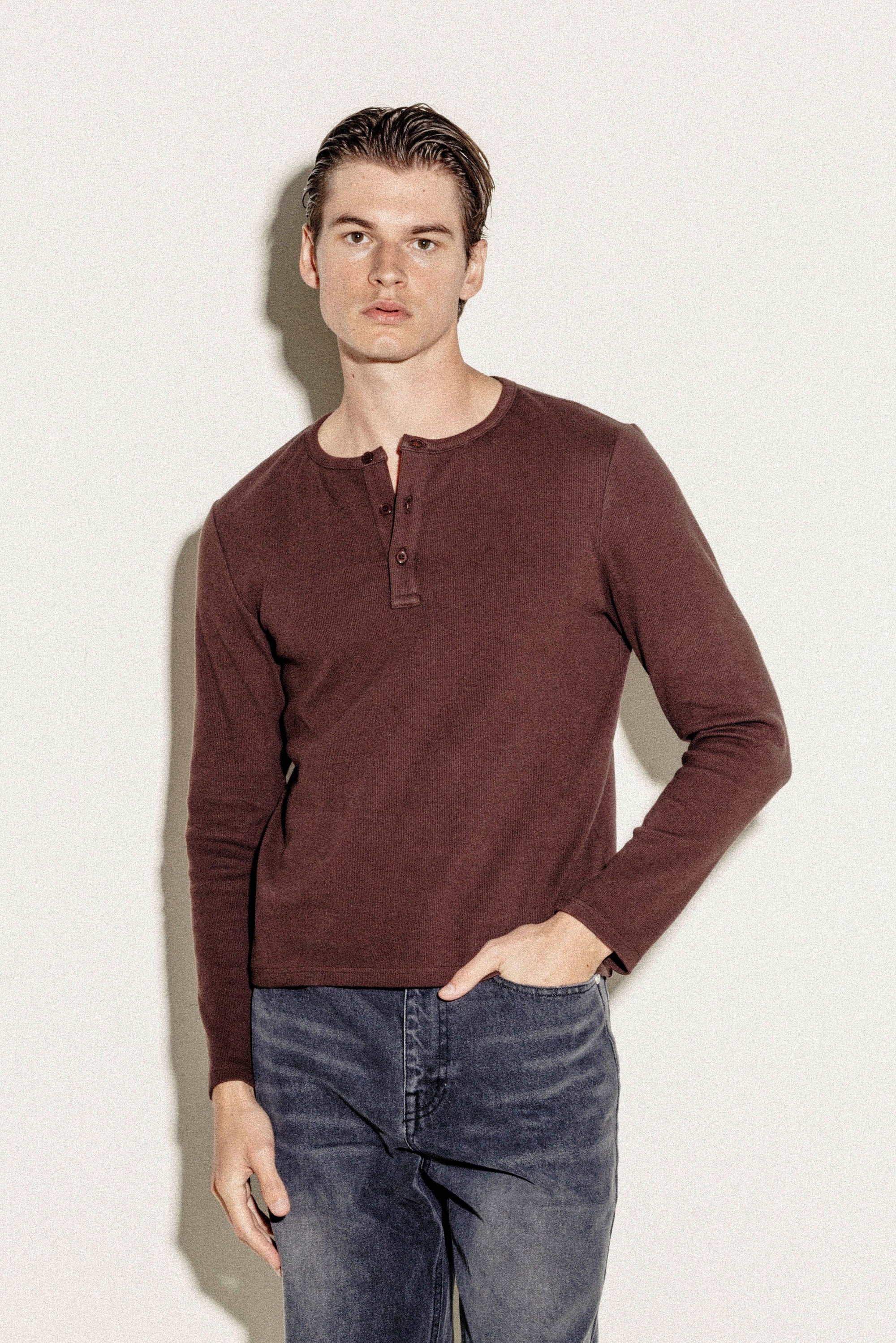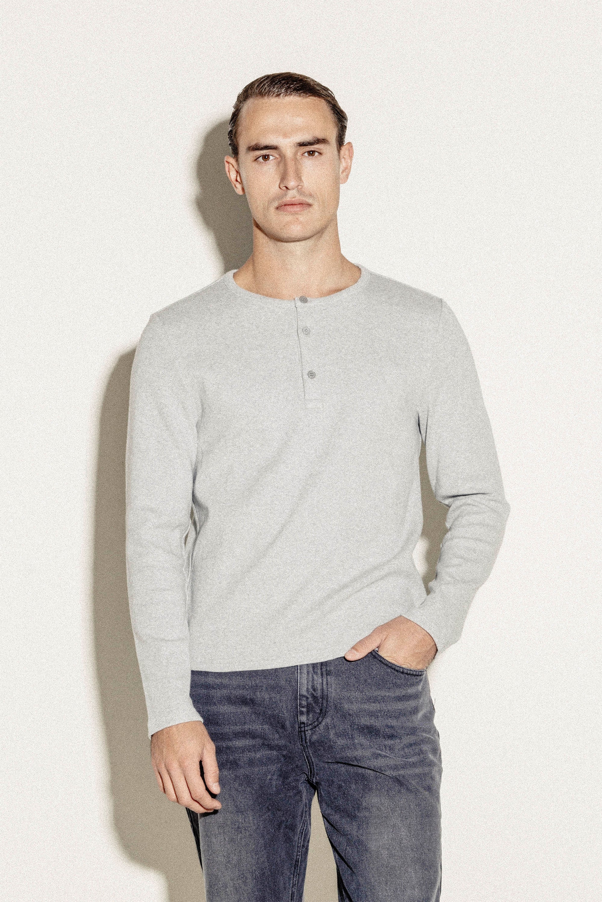 Our Henley Shirt is inspired by its 19th-century English rowing heritage, a collarless design originally created for freedom of movement. The slim fit, ribbed texture and signature three-button closure combine classic style with a modern silhouette.