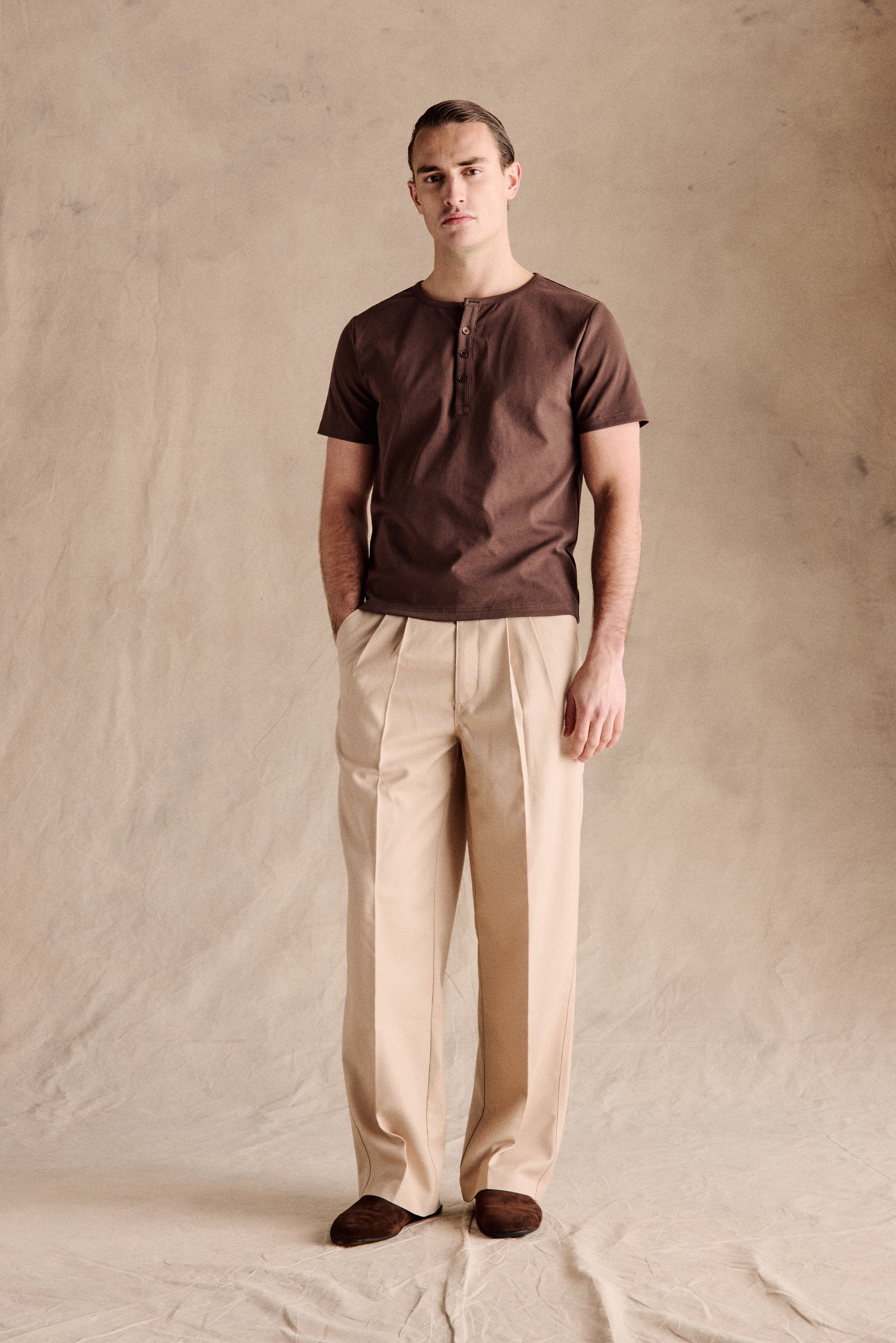 Our bestselling Manhattan Pleated Trousers in Beige are inspired by the effortless, understated style of the 1990s, recalling the easy, understated style of the decade. Our take reinterprets the classic pleated design in a premium wool blend with a relaxed straight-leg silhouette, giving them refined tailoring and versatile wearability. A wardrobe essential that combines luxury materials with everyday practicality.