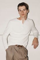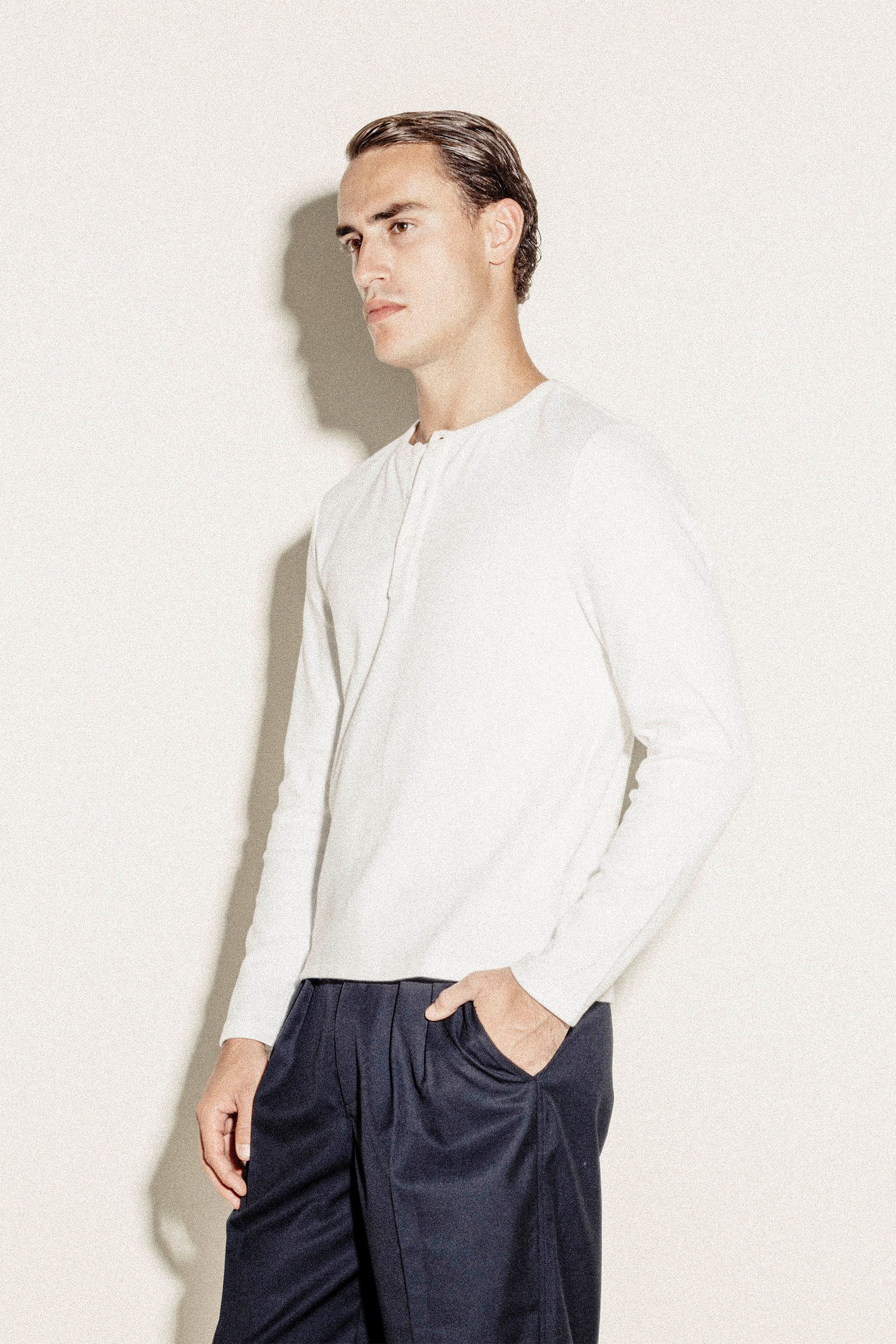 Our bestselling Henley Shirt in White is inspired by its 19th-century English rowing heritage, a collarless design originally created for freedom of movement. The slim fit, ribbed texture and signature three-button closure combine classic style with a modern silhouette.