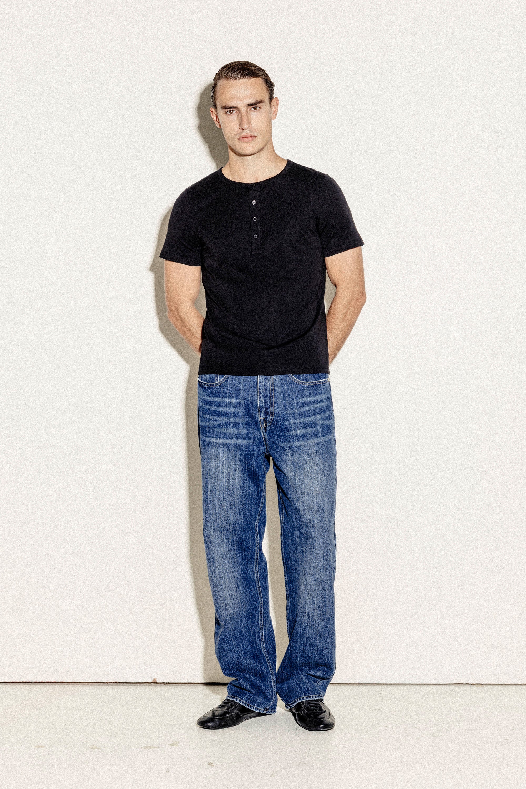 Our Wide Leg Jeans in Dark Blue are inspired by 1990s denim, capturing the relaxed yet refined style of the era. The subtle worn-in finish gives them an authentic, lived-in character, making them an everyday wardrobe essential.