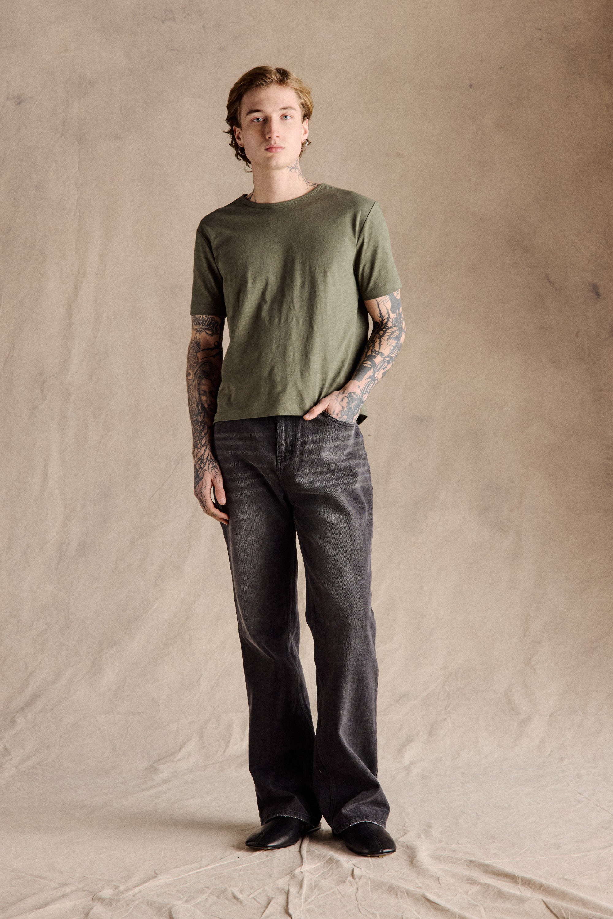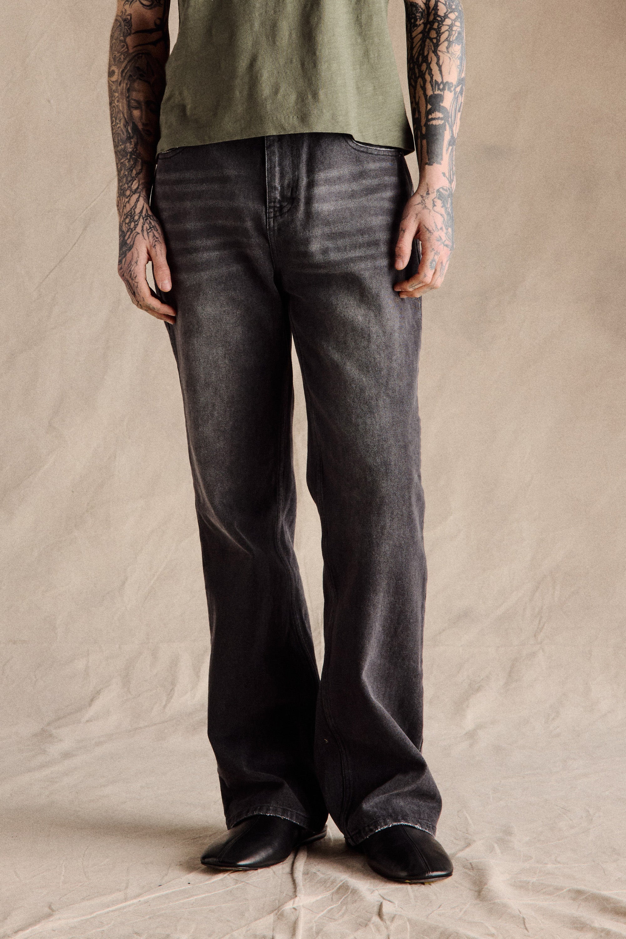 - Relaxed straight leg silhouette